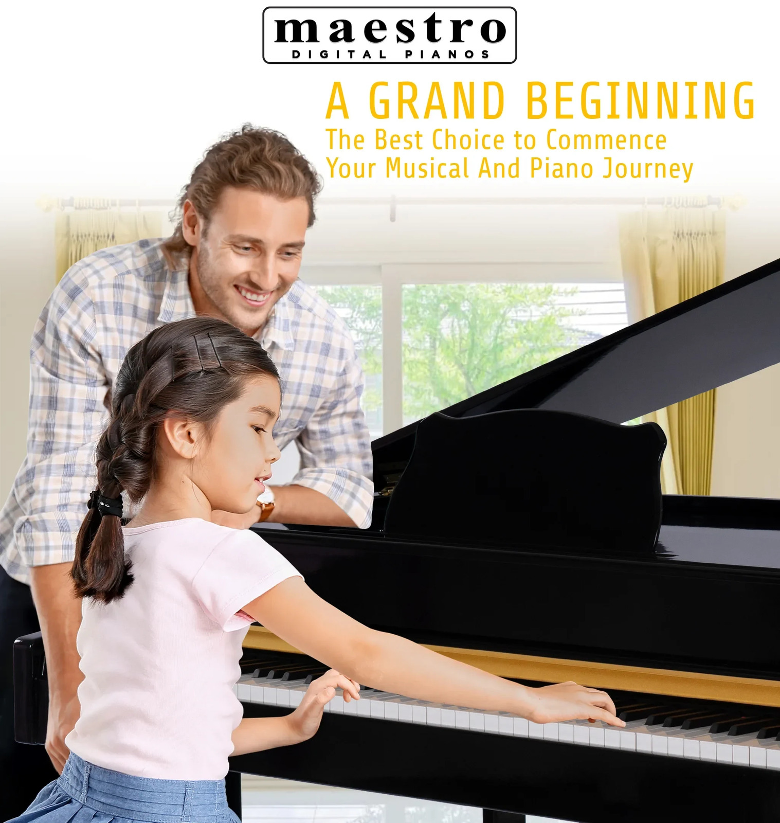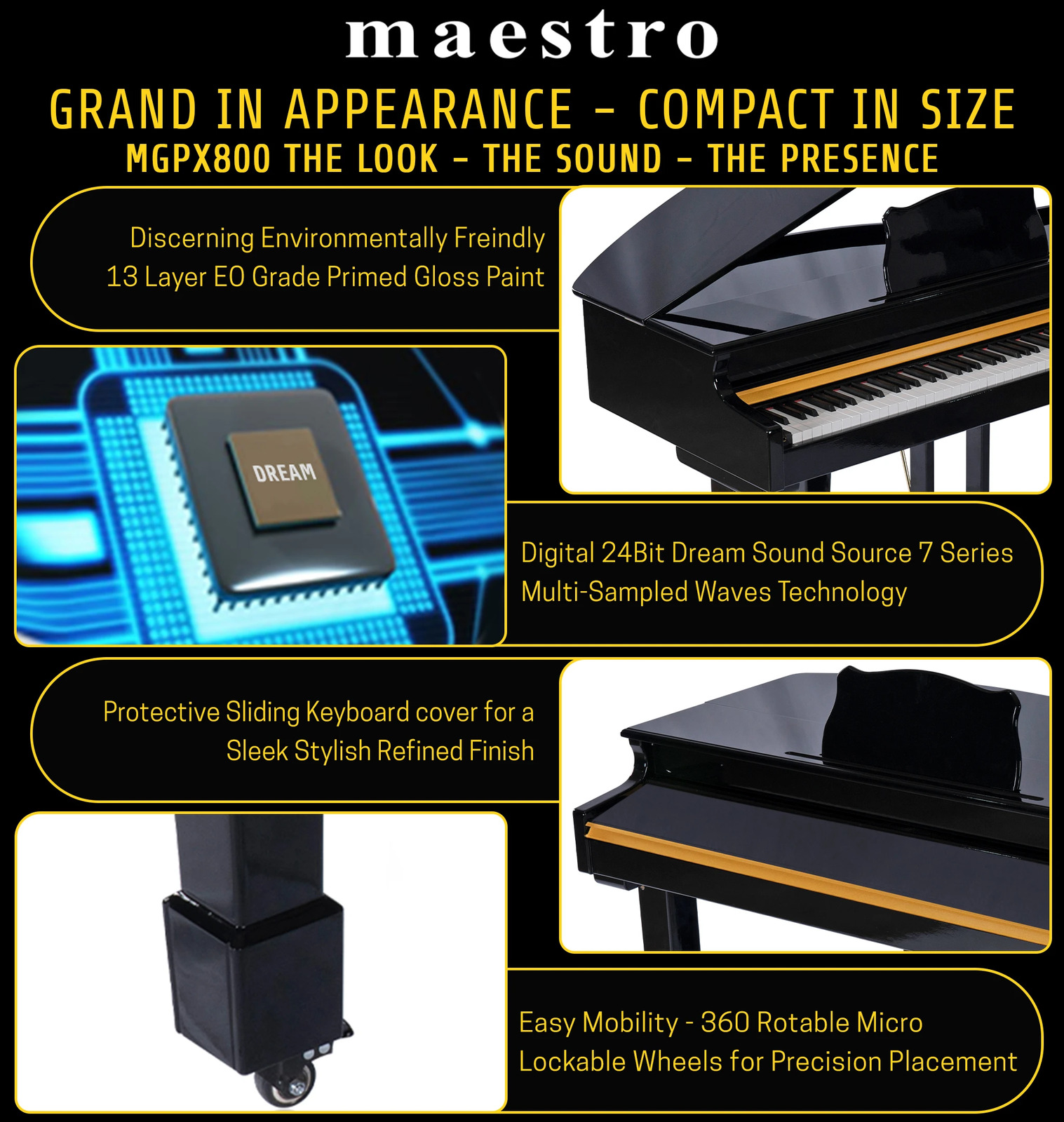 Maestro MGP800PB Digital Compact Grand Piano - 88-Key Weighted Progressive Hammer Action (POLISHED EBONY)