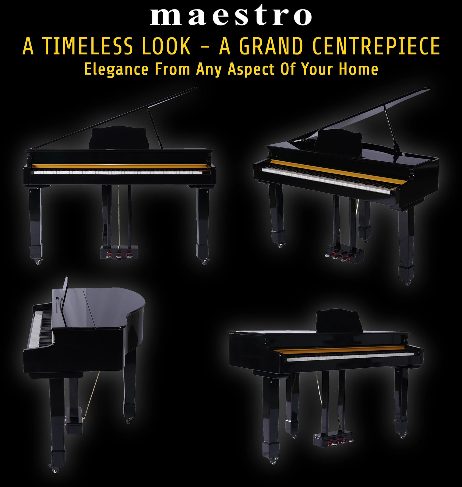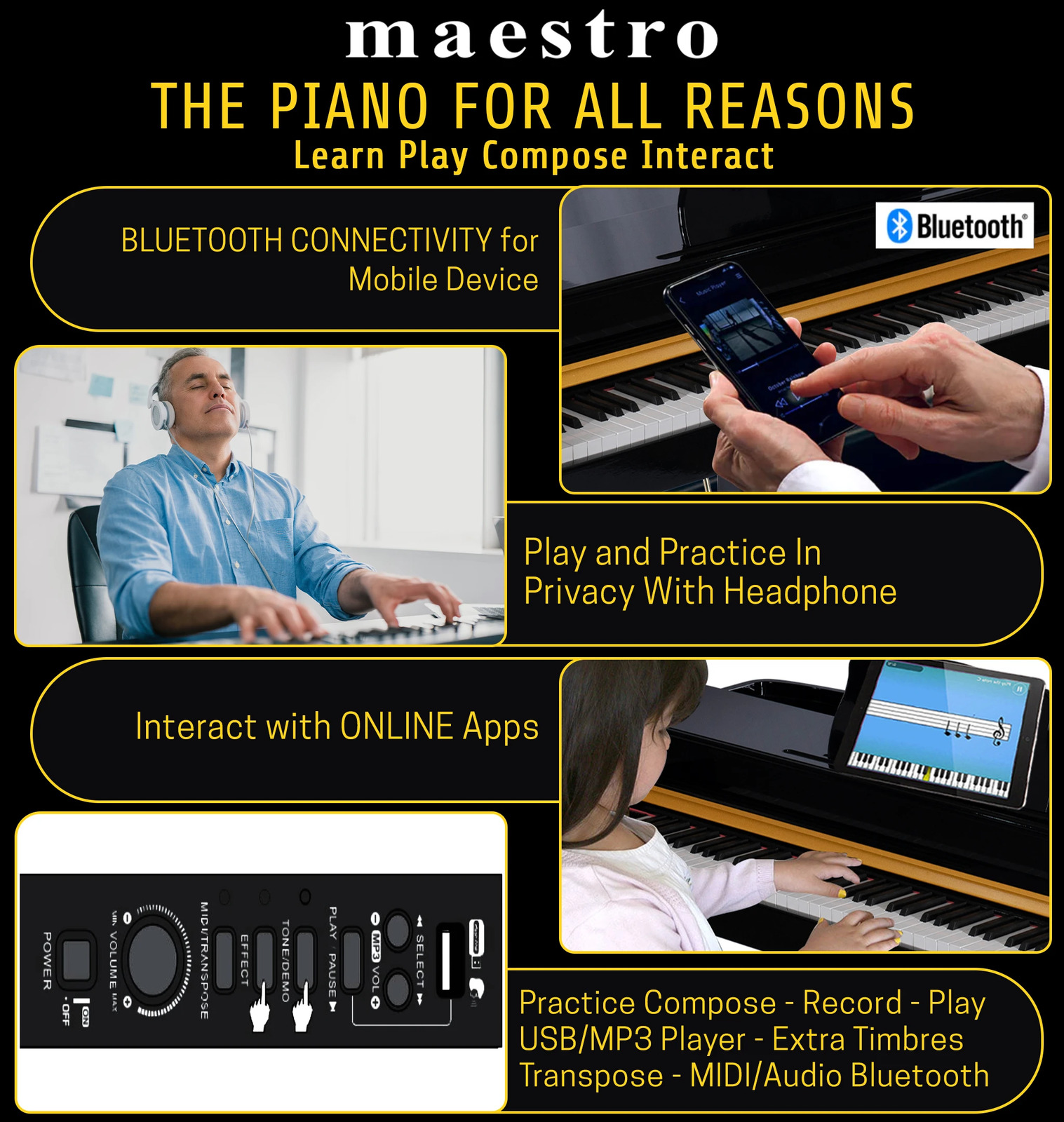 MAESTRO MGP800 POLISHED BLACK DIGITAL BABY GRAND PIANO W/ 88 WEIGHTED HAMMER ACTION KEYS