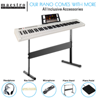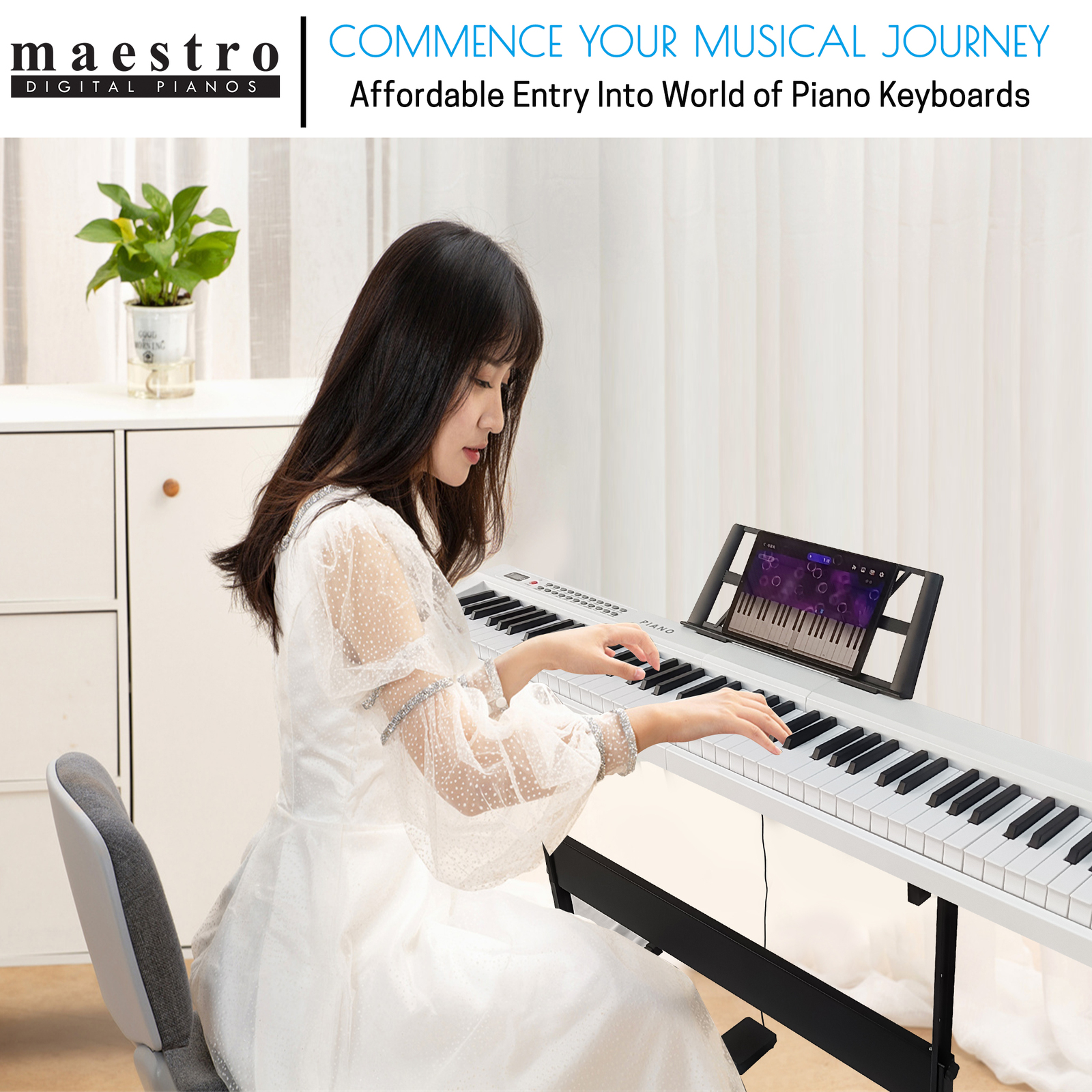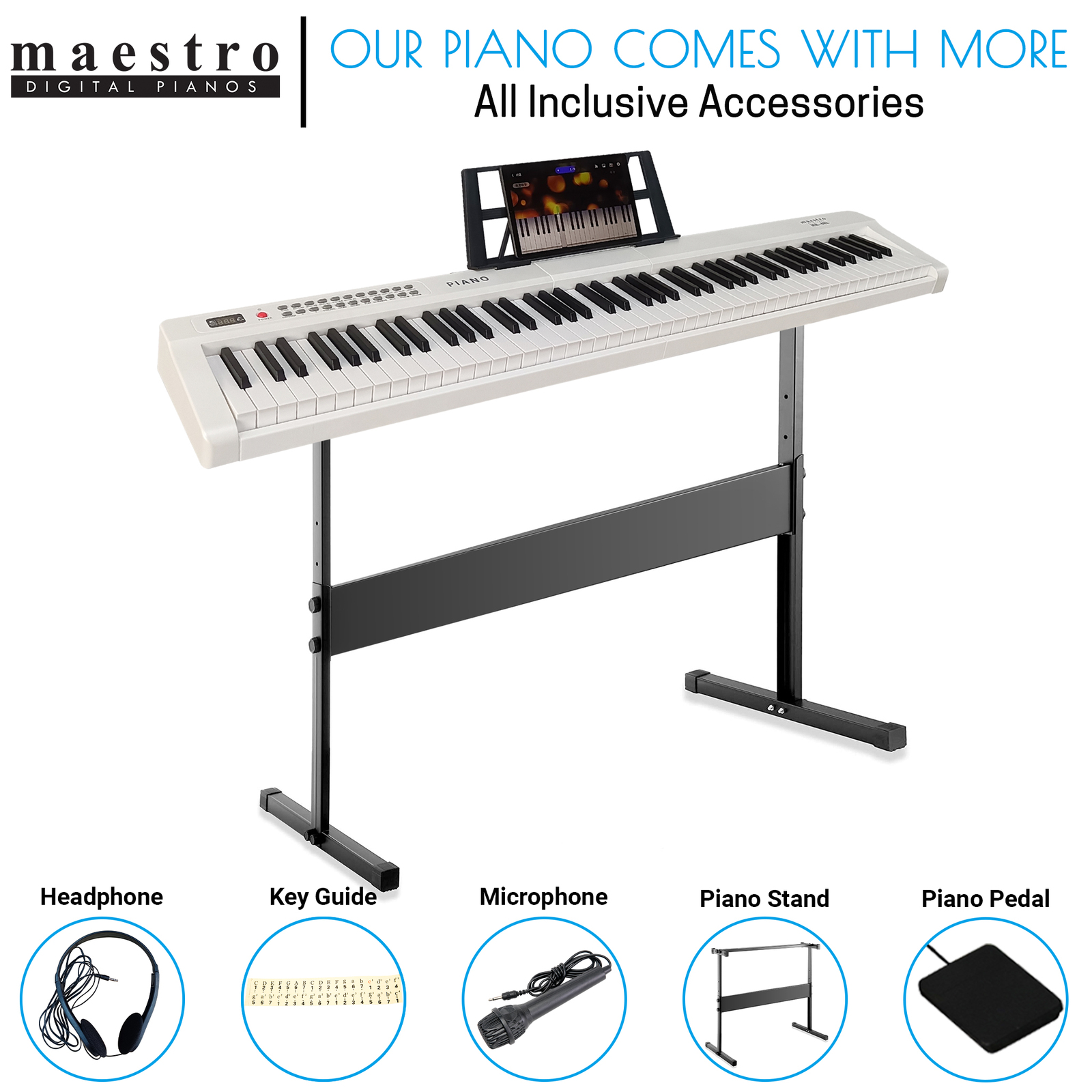 Maestro Beginner 88-Key Touch Sensitive Digital Piano Full-Sized Keyboard Bluetooth-Stand -White, USB & MP3 Player