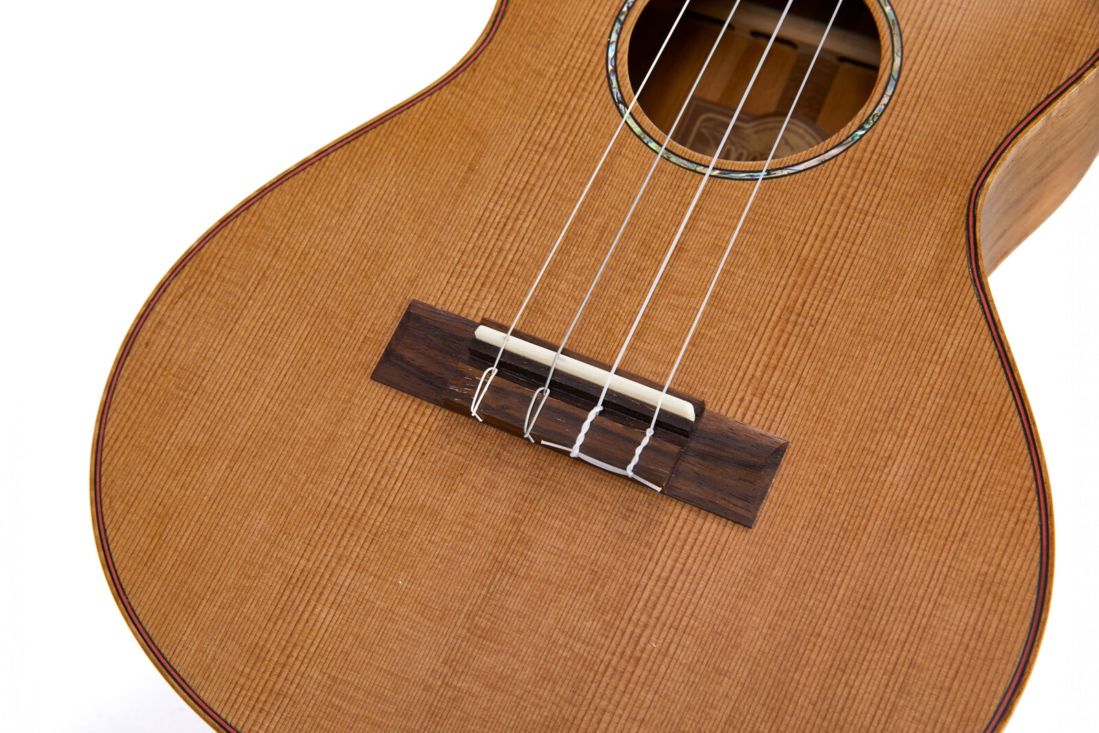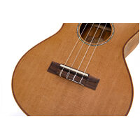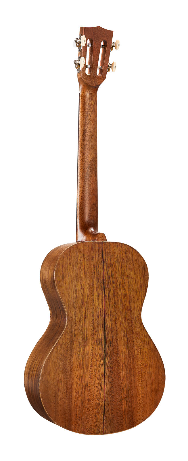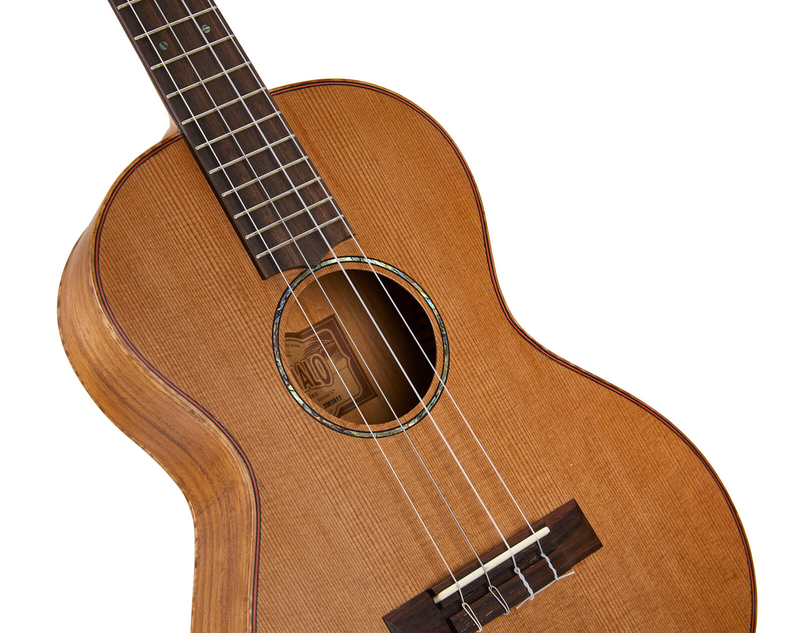 Hand-made, solid red cedar top with solid mahogany back and sides. Arched back with centre back strip. Flamed maple side binding with 3 ply multi-layer wood top binding. One piece mahogany neck. Amara ebony fingerboard with abalone dot inlaid position markers. Slotted headstock with flamed maple veneer and inlaid abalone Mahalo logos and 3 ply multi-layer wood binding. Inlaid abalone soundhole rosette. Amara ebony bridge. Bone nut and saddle. Unique ToneFlow bracing. High quality Taiwanese nickel plated Waverley style machine heads with ivoroid buttons. Aquila Super Nylgut strings. 20 nickel frets.