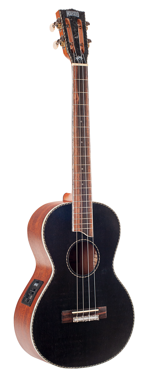 Mahalo Baritone Ukulele. Electric/Acoustic. Pearl Series Series Transparent black top Satin 511mm scale.
