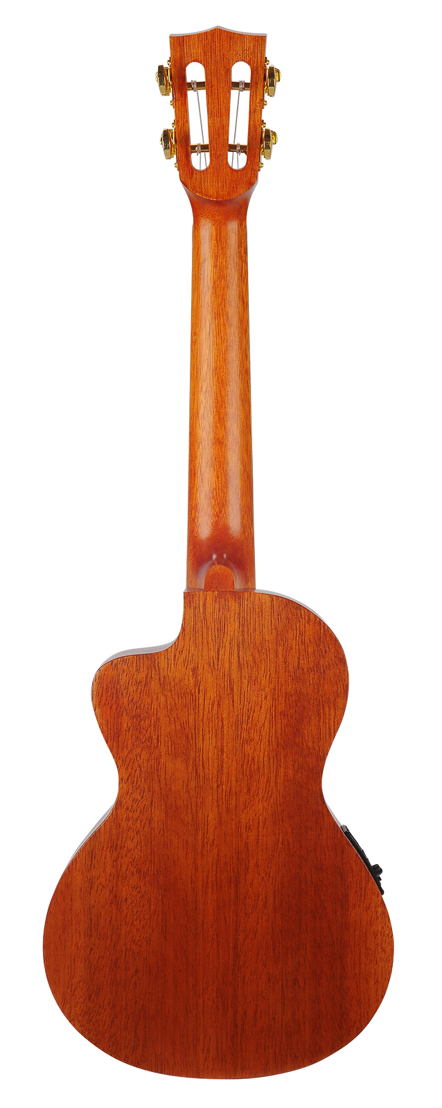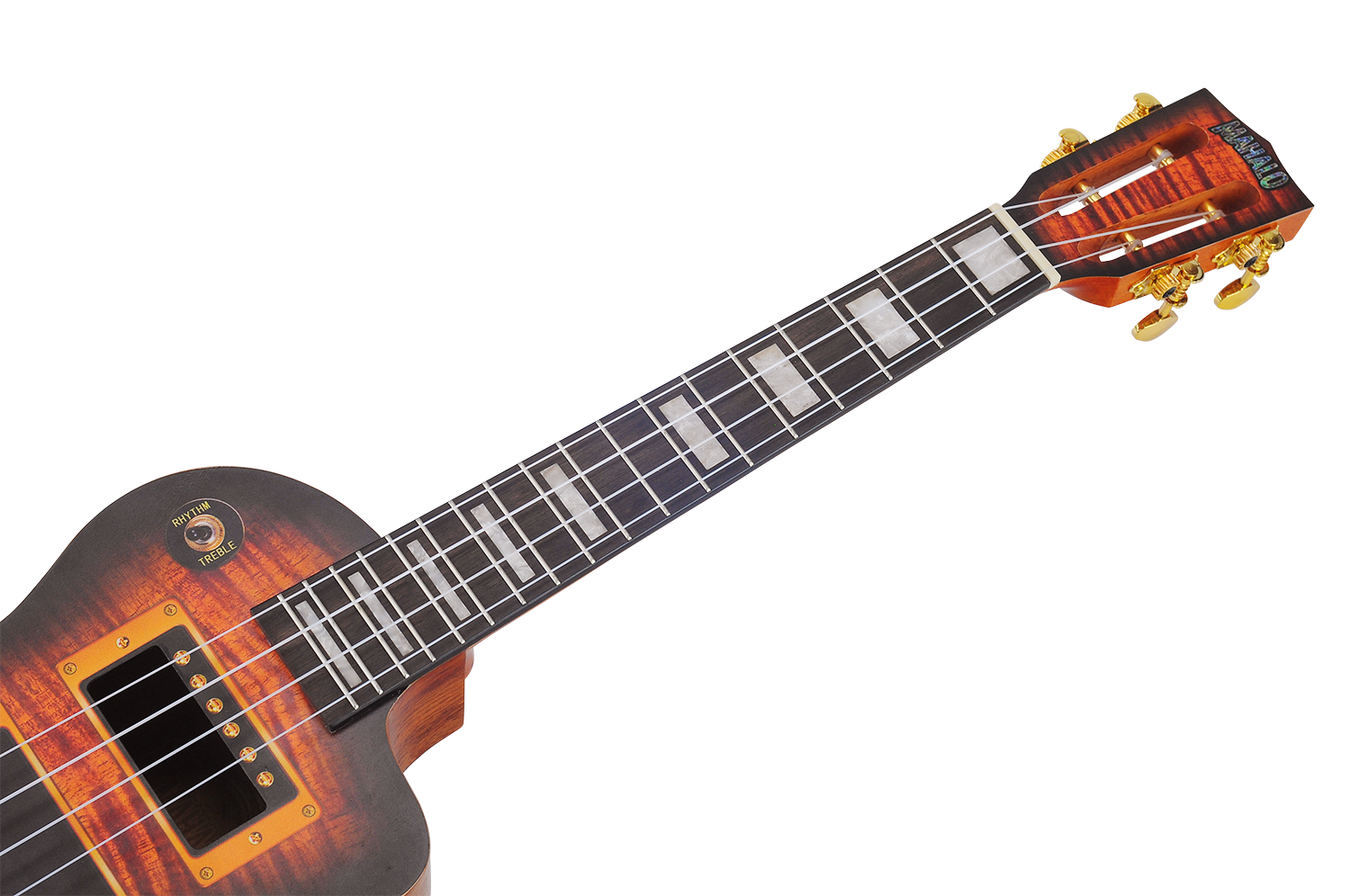 Quality instruments with stunning graphic art designs and great sound. The heart of the ARTIST ELITE series lies within its unique graphic art designs and intricate inlays coupled with quality woods and superb craftsmanship Fitted with stage ready under-saddle pickup and Mahalo MEQ2 on-board pre-amp system for great plugged-in tone that picks up every nuance of your performance. It even features a built-in tuner so youll always sound your best. SPECIFICATIONS: GRAPHIC DESIGN: Graphic Art Design - Top Only BODY: Nato with Arched Back NECK: Mahogany HEADSTOCK: Slotted FINGERBOARD: Amara Ebony POSITION MARKERS: Pearloid Inlaid BRIDGE: Amara Ebony FRETS: 18, Nickel MACHINE HEADS: Waverly Style, Gold Plated STRINGS: Aquila Super Nylgut SADDLE: Graph Tech NuBone XB NUT: ABS, White SCALE LENGTH: Tenor 432mm ELECTRONICS: Electric Guitar: Mahalo MEQ2 On-board Preamp with Tuner.