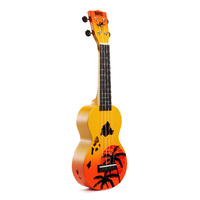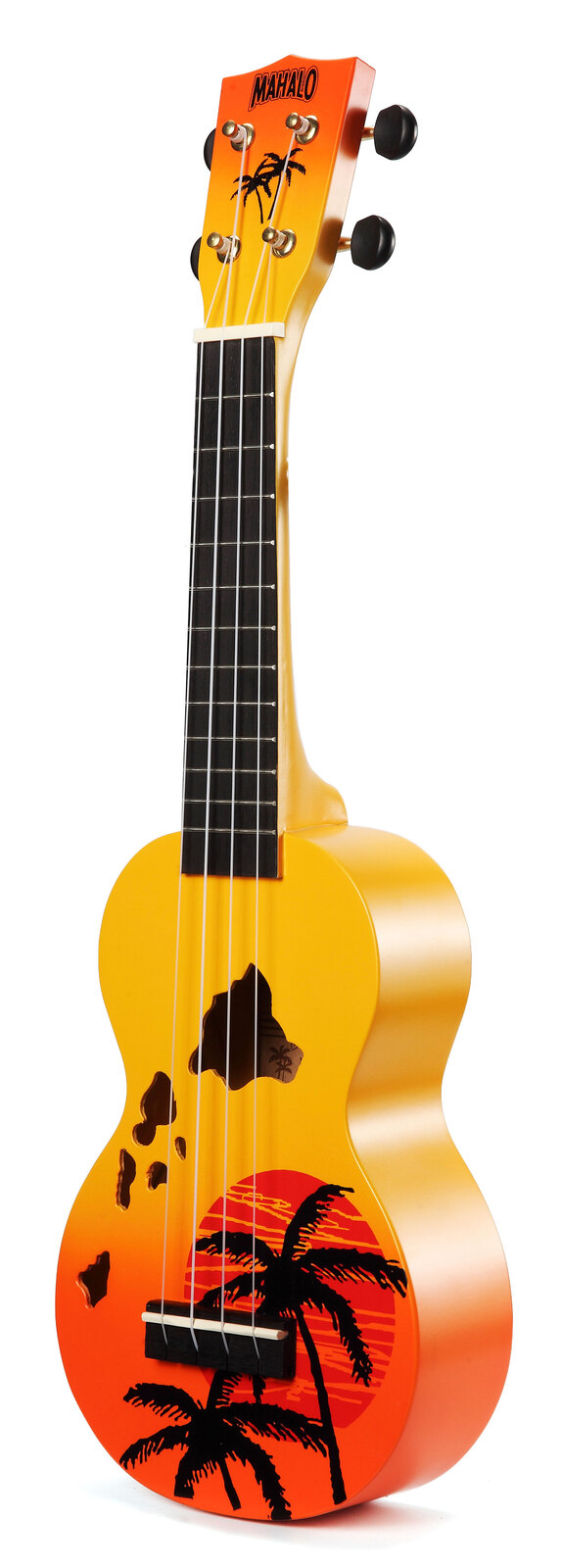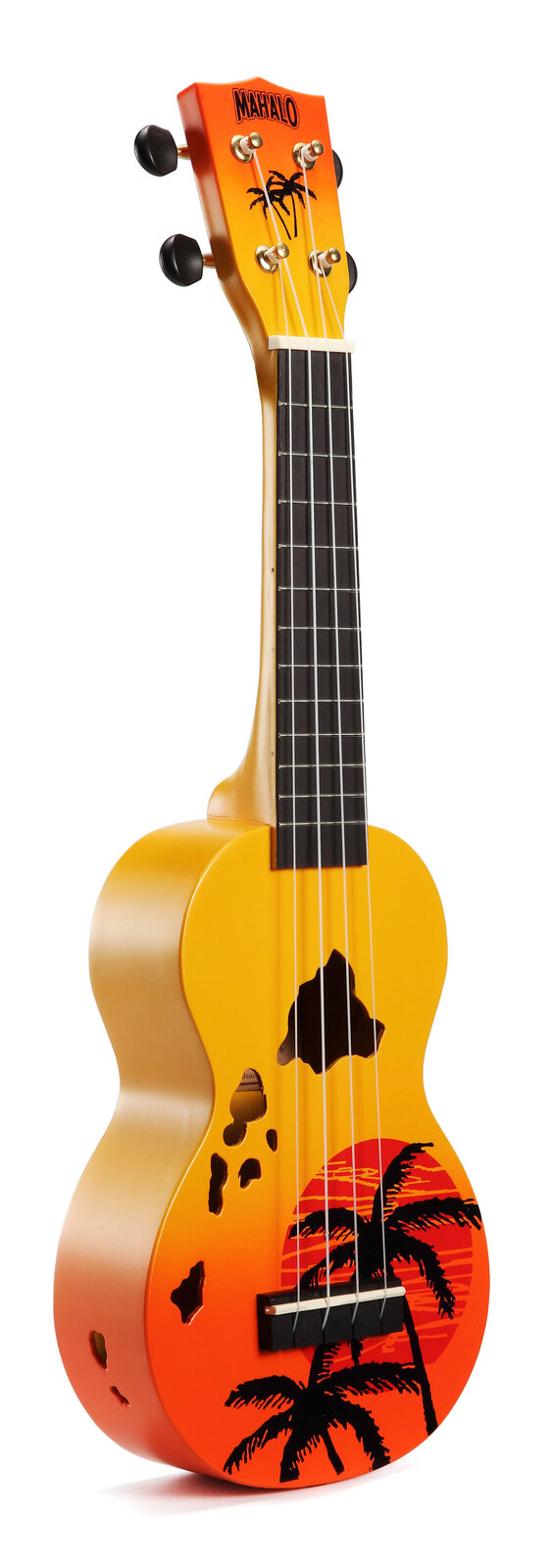 The Mahalo Designer Series consists of screen printed graphics and unique shaped soundholes. The Series pays tribute to Hawaii, where the Ukulele orginated from. Available in striking sunburst colours, featuring beautiful sunset palm tree motif and soundholes in the shape of the Hawai'ian islands.