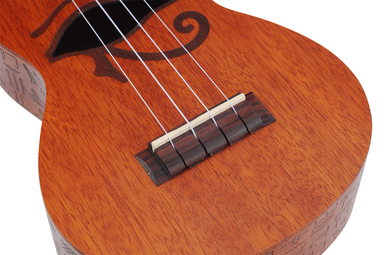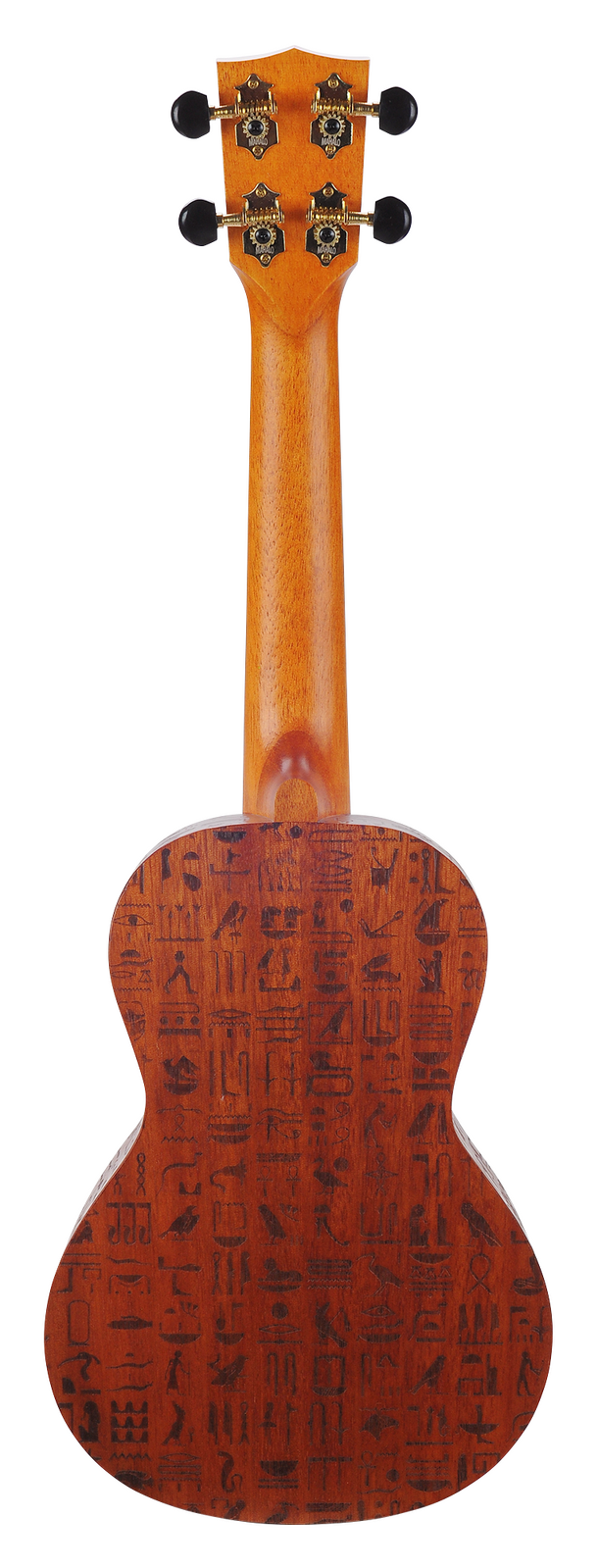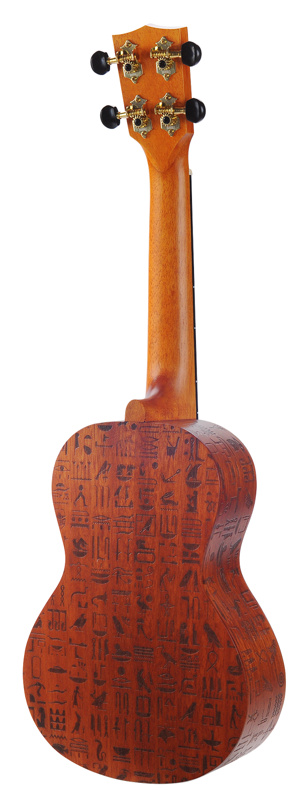 Quality instruments with stunning graphic art designs and great sound. The heart of the ARTIST ELITE series lies within its unique graphic art designs and intricate inlays coupled with quality woods and superb craftsmanship Natural finish body with unique Eye of Ra soundhole design along with laser engraved hieroglyphics on top, back and sides. Ebony fingerboard with highly detailed Egyptian number pearloid inlays and engraved headstock. SPECIFICATIONS: GRAPHIC DESIGN: Graphic Art Design - Top Only BODY: Nato with Arched Back NECK: Mahogany HEADSTOCK: Traditional FINGERBOARD: Amara Ebony POSITION MARKERS: Pearloid Inlaid BRIDGE: Amara Ebony FRETS: 16, Nickel MACHINE HEADS: Vintage, Gold Plated STRINGS: Aquila Super Nylgut SADDLE: Graph Tech NuBone XB NUT: ABS, White SCALE LENGTH: Concert 379mm