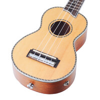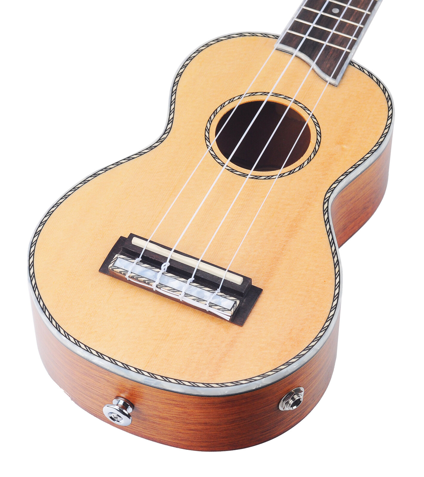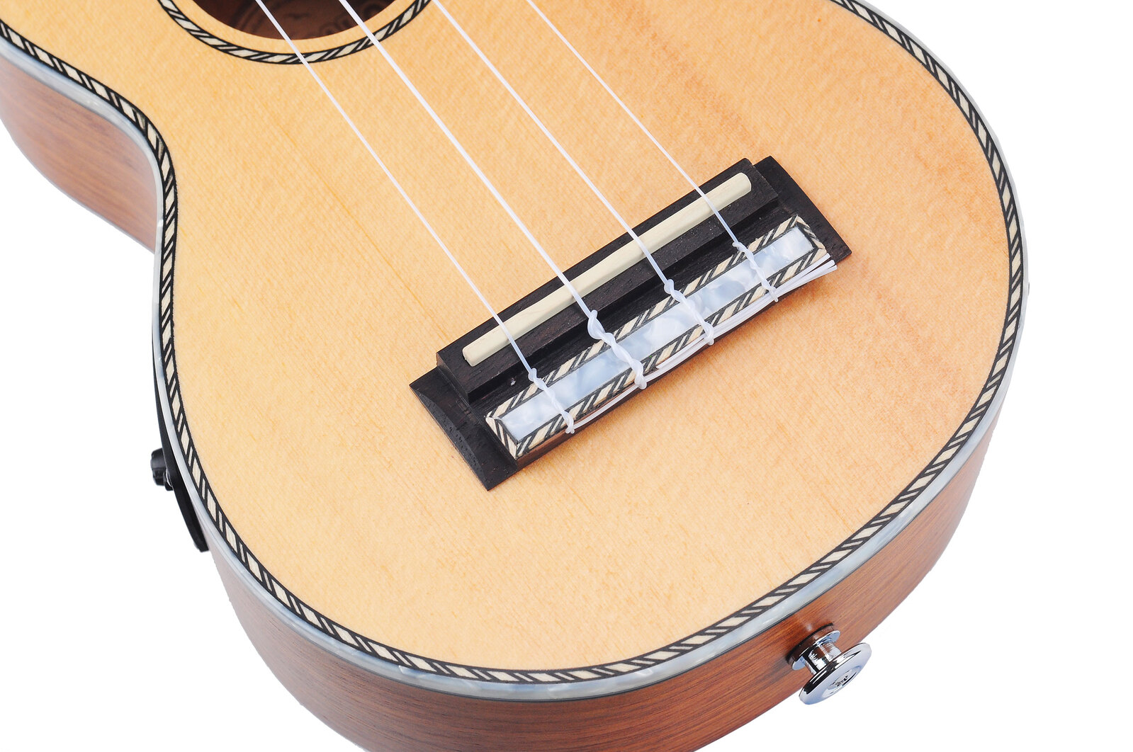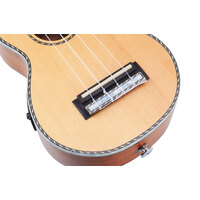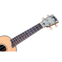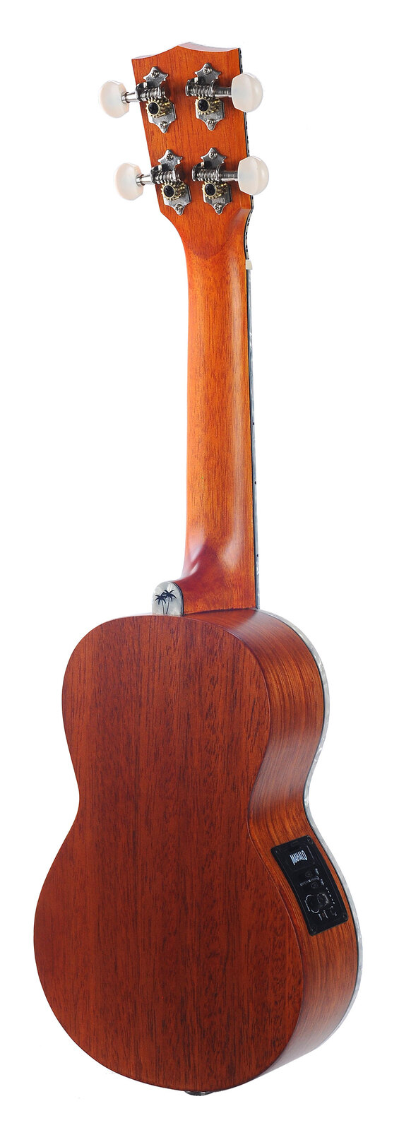 Our master luthiers are committed to producing finely handcrafted instruments with an artistic edge, and the PEARL SERIES is the result of this commitment. We are proud to introduce this series to players around the world seeking professional-grade instruments with a unique look and sound. Our Sitka spruce tops provide precise clarity and incredible dynamic response while mahogany bodies add sustain and warmth to the tone. A smooth mahogany neck with ebony fingerboard offers amazing response and smooth playability across the entire surface of the neck. A genuine ebony bridge and Graph Tech NuBone XB saddle add to the resonance and durability of this magnificent instrument. To match these premium specifications, PEARL SERIES instruments feature skilfully crafted pearloid veneers and wood inlays all around the headstock, neck, body and bridge to add a uniquely sophisticated touch. ELECTRIC ACOUSTIC MODEL. Fitted with stage ready piezo under-saddle pickup and MEQ2 on-board preamp system with 2-band EQ and built-in tuner - ready to plug in for a great sounding performance or recording. (Selected models only). MAHALO PEARL SERIES the perfect balance of great sound, stunning looks and effortless playability. SPECIFICATIONS TOP: Solid Sitka Spruce BODY: Mahogany with Arched Back TOP BINDING: Pearloid, 3 ply black/white binding with wood rope inlaid purfling HEADSTOCK VENEER: Pearloid, 3 ply black/white with wood Rope inlaid binding and Palm motif FINGERBOARD: Ebony with wave shaped end detail NECK: Mahogany NECK BINDING: Pearloid, 3 ply black/white POSITION MARKERS: Inlaid Celluloid NECK SIDE DOTS: Yes NECK HEEL: Pearloid, 3 ply black/white cap with Palm motif FRETS: 12, Nickel BRIDGE: Ebony TIE BLOCK MOSAIC: Pearloid, with wood Rope inlaid binding TOP NUT: ABS, White BRIDGE SADDLE: Graph Tech NuBone XB ROSETTE DECORATION: Wood Rope inlaid. MACHINE HEADS: Vintage, Nickel Plated with Cream buttons STRAP BUTTON: Nickel STRINGS: Aquila, Super Nylgut SCALE LENGTH: Soprano: 346mm NUT WIDTH: 34mm FINISH: Matt ELECTRONICS: MP1E Model - Mahalo MEQ2 On-board Preamp with Tuner Heavy Duty Carry Bag with Shoulder Strap Included