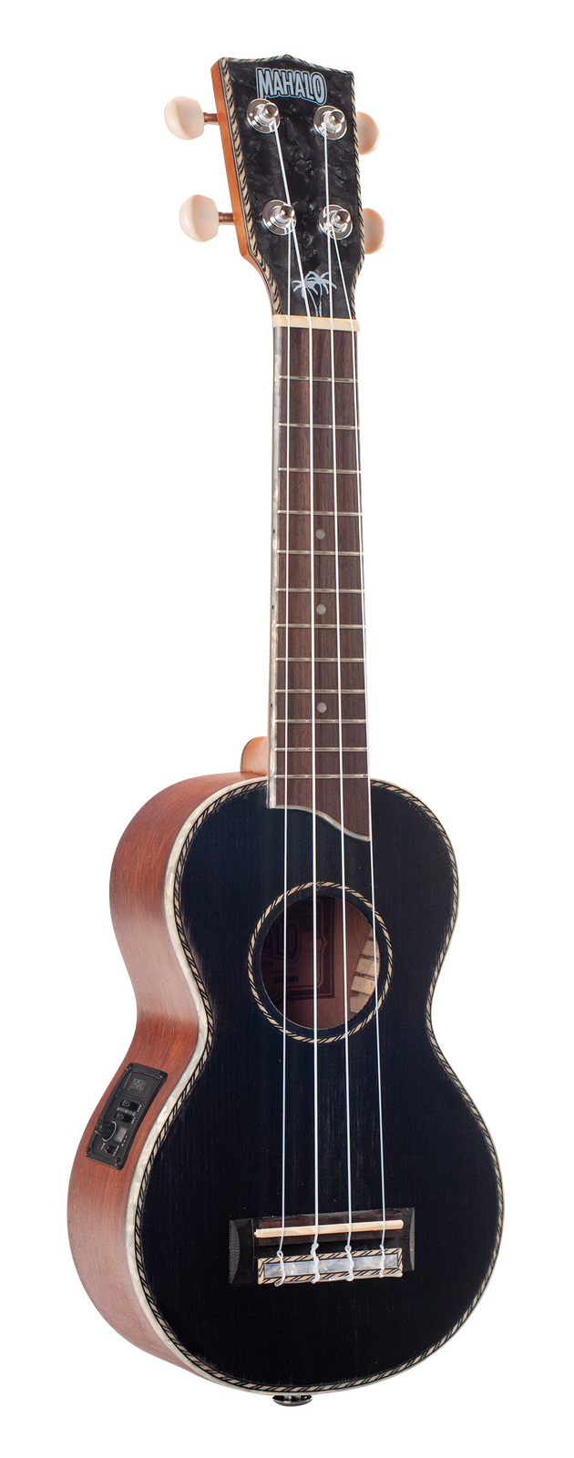 Mahalo Soprano Ukulele. Electric/Acoustic. Pearl Series Series Transparent black top Satin 346mm scale.