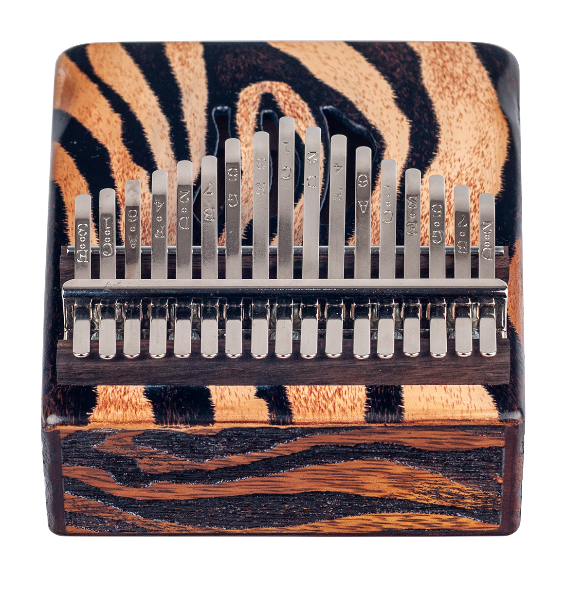 The Kalimba has a rich musical history stretching back some 3,000 years to the Shona people of Zimbabwe, Southern Africa. A close relation to the ancient Mbira, the Kalimba has been an important part of African music and culture for thousands of years. Today, the bell-like tone of the Kalimba with its even harmonics and rich warm tone blends well with modern music. Its compact size makes it an ideal travel instrument. Made from highly decorative trembesi wood and available in 9 different graphic art finishes, the Mahalo Kalimba is sure to become a crowd favorite. Play it solo or accompany a ukulele for a unique, modern sound. SPECIFICATIONS: BODY: Trembesi Wood with Graphic Art Design Top, Back & Sides TINES/KEYS: 17, Stainless Steel REAR VIBRATO HOLES: 2 FINISH: Matt STANDARD TUNING Key of C TUNING HAMMER: Traditional, Metal WITH DELUXE SUEDE LIKE CARRY BAG, USER GUIDE & TUNING HAMMER