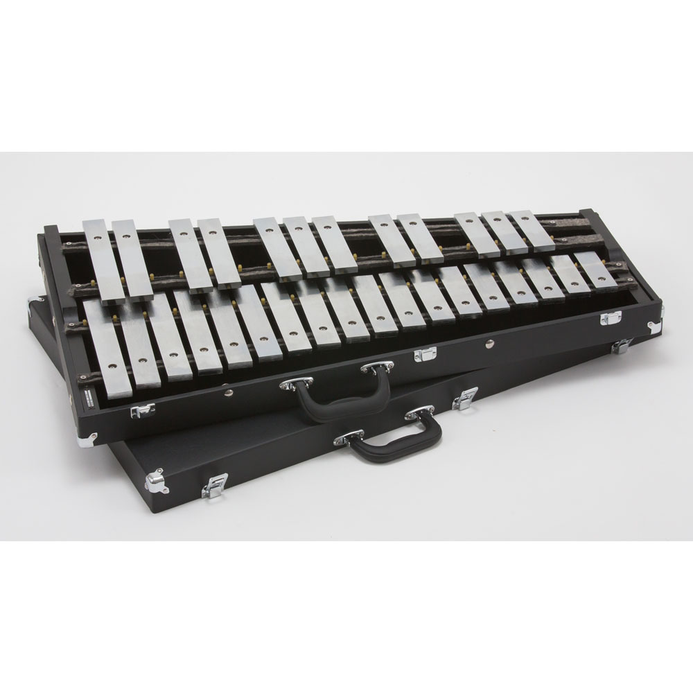 Majestic B3525S 2.5 octave orchestra bells feature precision tuned thick steel bars with single pin mounting and deep wood case with aluminum valance.