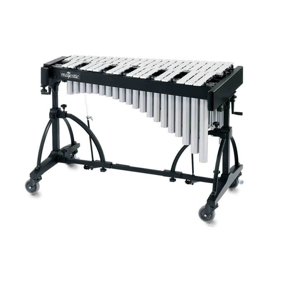 The Majestic Deluxe 3.0 Octave vibraphone offers reliability in compact size for schools and working professionals. A steel reinforced belt, wide pedal with dual pull rods and sturdy height adjustable frame provide years of worry-free performance. Silver bars and black resonators provide modern style.