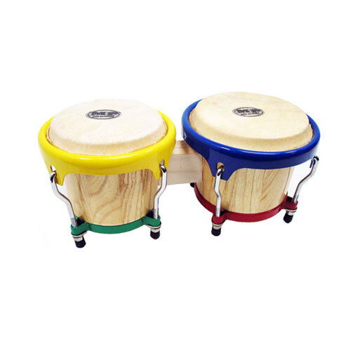 Heavy duty professional bongo. Quality shells. 6" and 7" natural skin heads. Comfort curve rims. Blue, yellow, red and green harlequin coloured hardware and 8 chrome tuning rods. Natural
