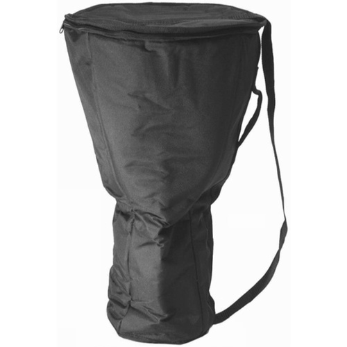 Djembe bag. Heavy duty black nylon waterproof yarn. Foam padding. Carry handle and adjustable shoulder strap. 10" .