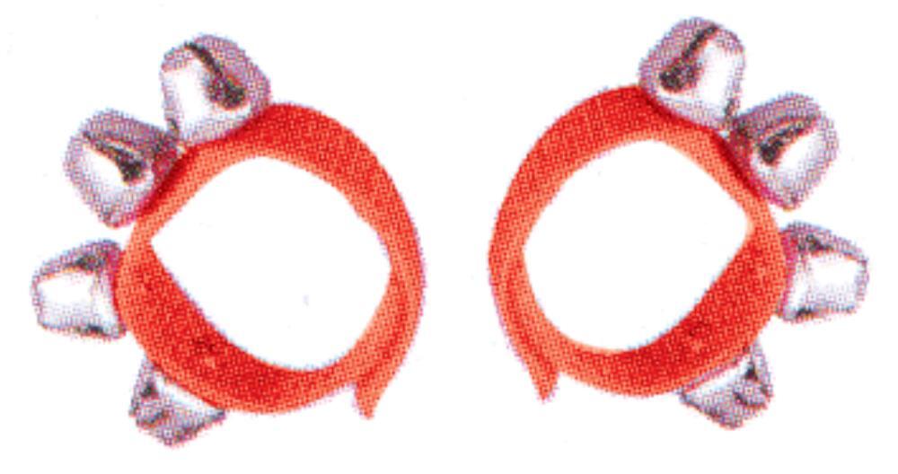 Pair of 4 bells attached to a poly seatbelt type strap with Velcro ends to secure onto wrist. Red. Pair.