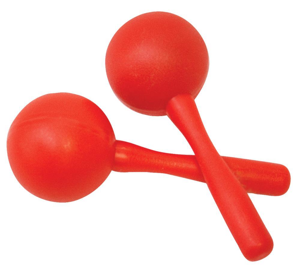 These mano MP maracas are made from plastic. Round-shaped mascaras with a handle to hold them. This pair of 8¼" long maracas comes in the color red. Great for beginners and kids to shake.