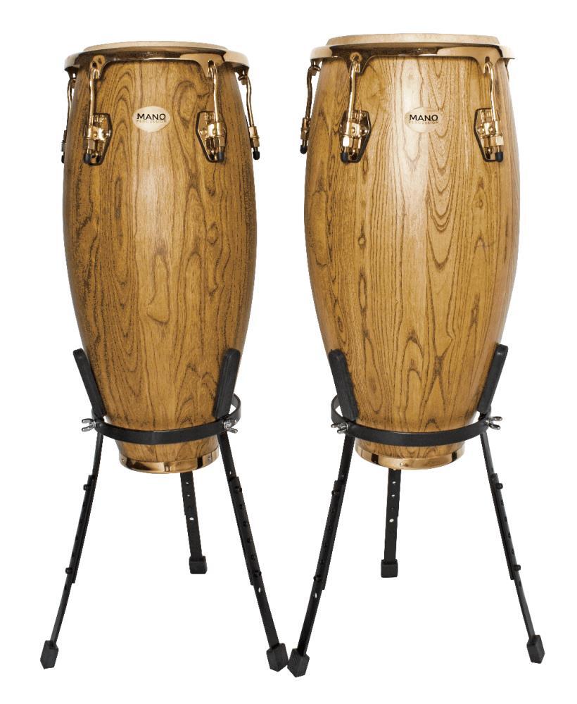 The Mano Percussion 1617 congas feature quality selected wood shells, metal rims, and natural skins.
