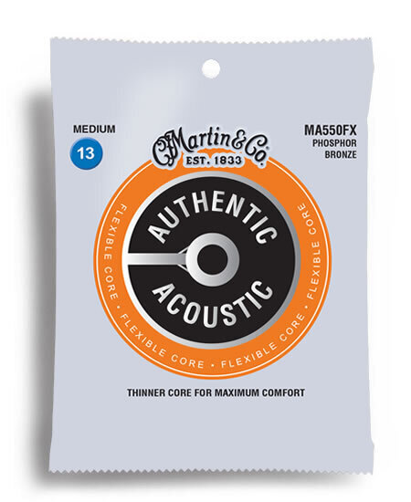 Martin Authentic Acoustic Flexible Core strings reduce finger fatigue, they are ideal for fingerstyle and note bending and offer comfort without sacrificing tone.