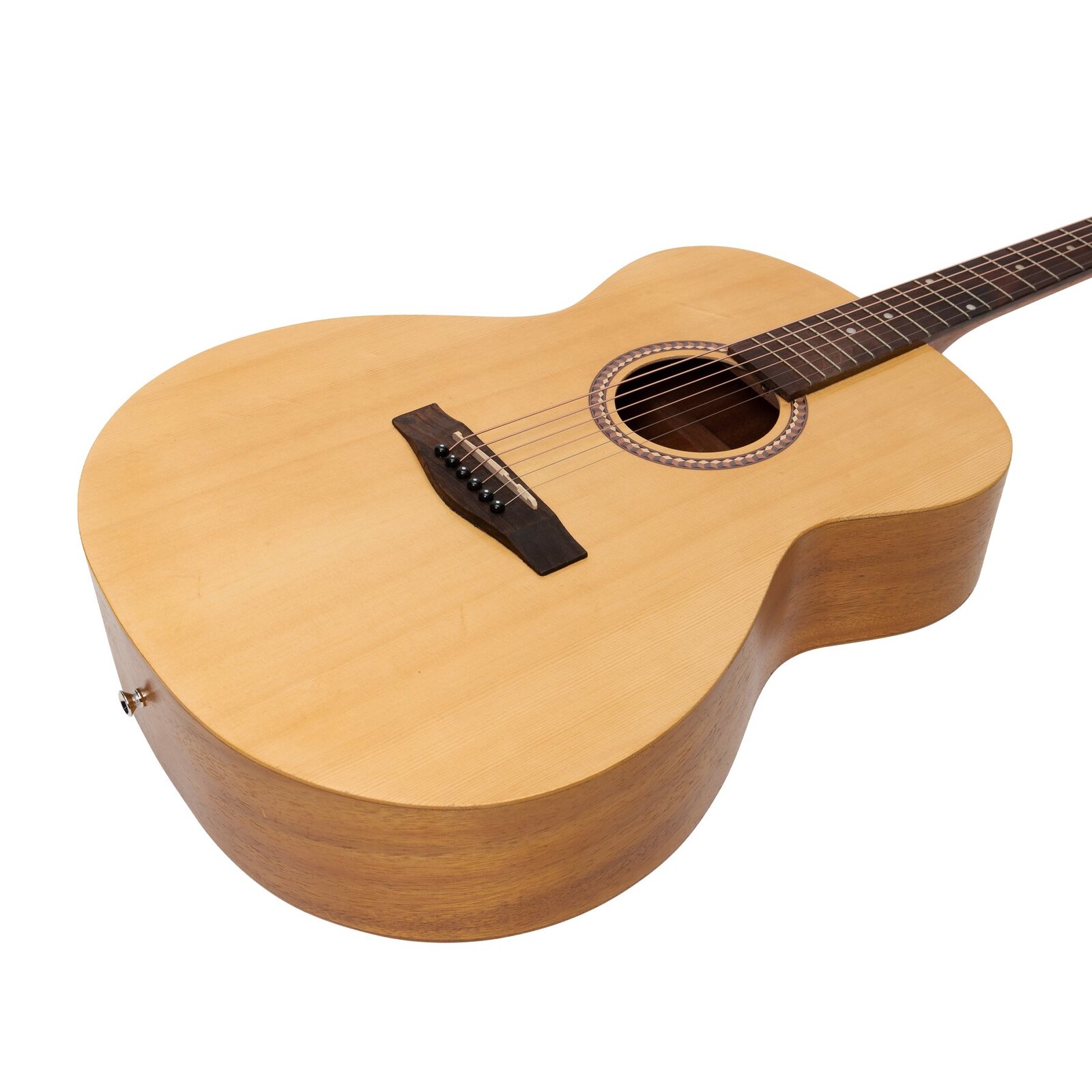 The Martinez MF-25-NST Small-Body Guitar is a versatile and compact acoustic, which provides players with a bright and balanced tone.
