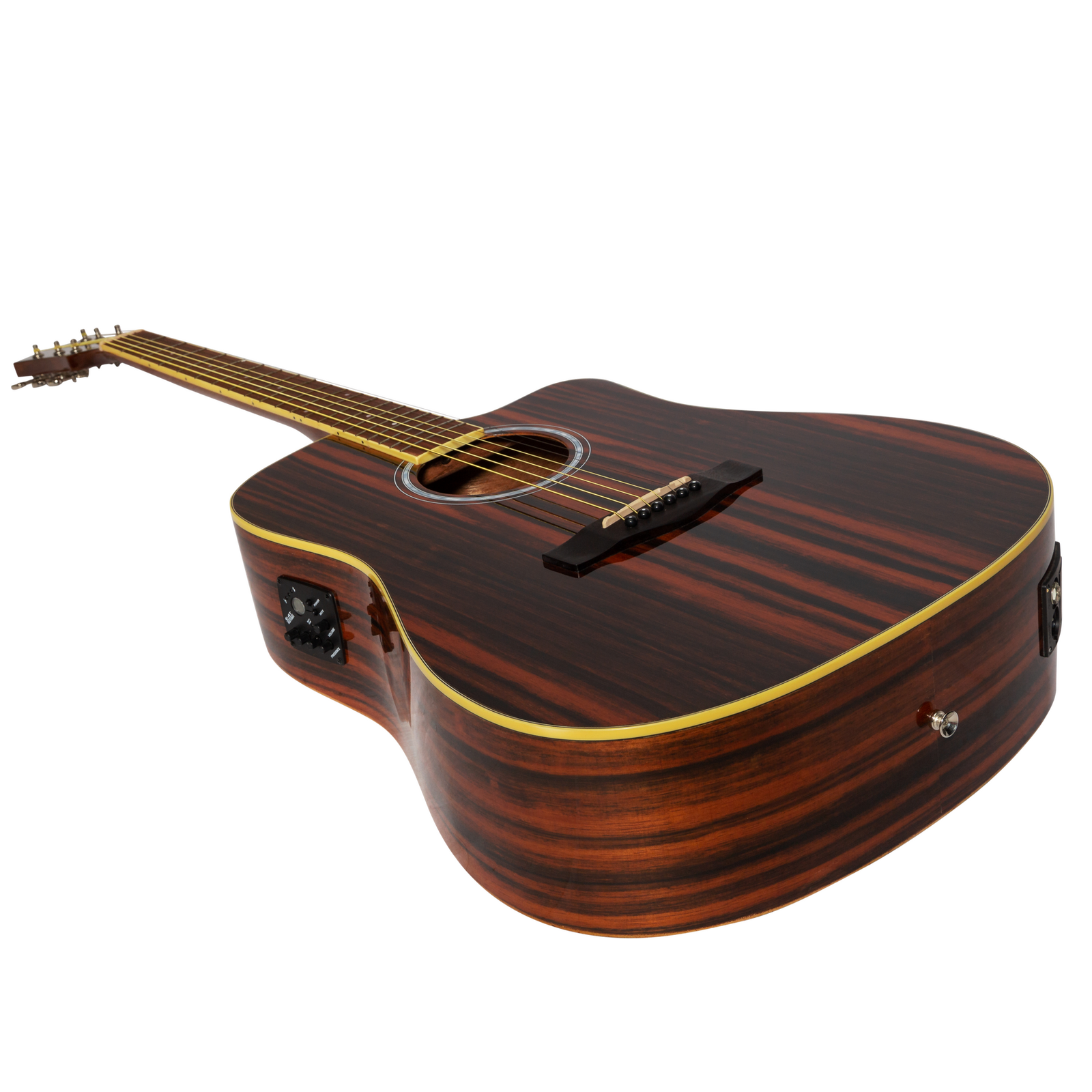 The new Martinez '51 Series' Acoustic-Electric Dreadnought Cutaway Guitar Amara (Gloss) combines head turning good looks, with classic dreadnought construction, to deliver a uniquely beautiful playing and sounding guitar.