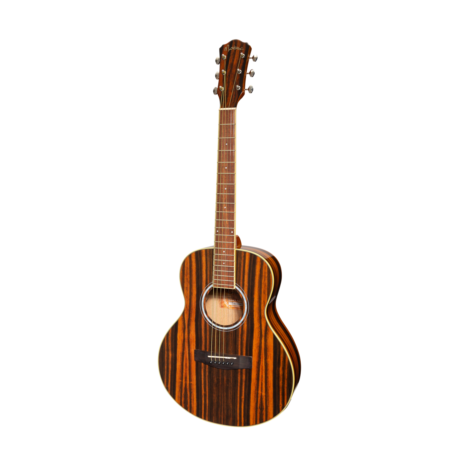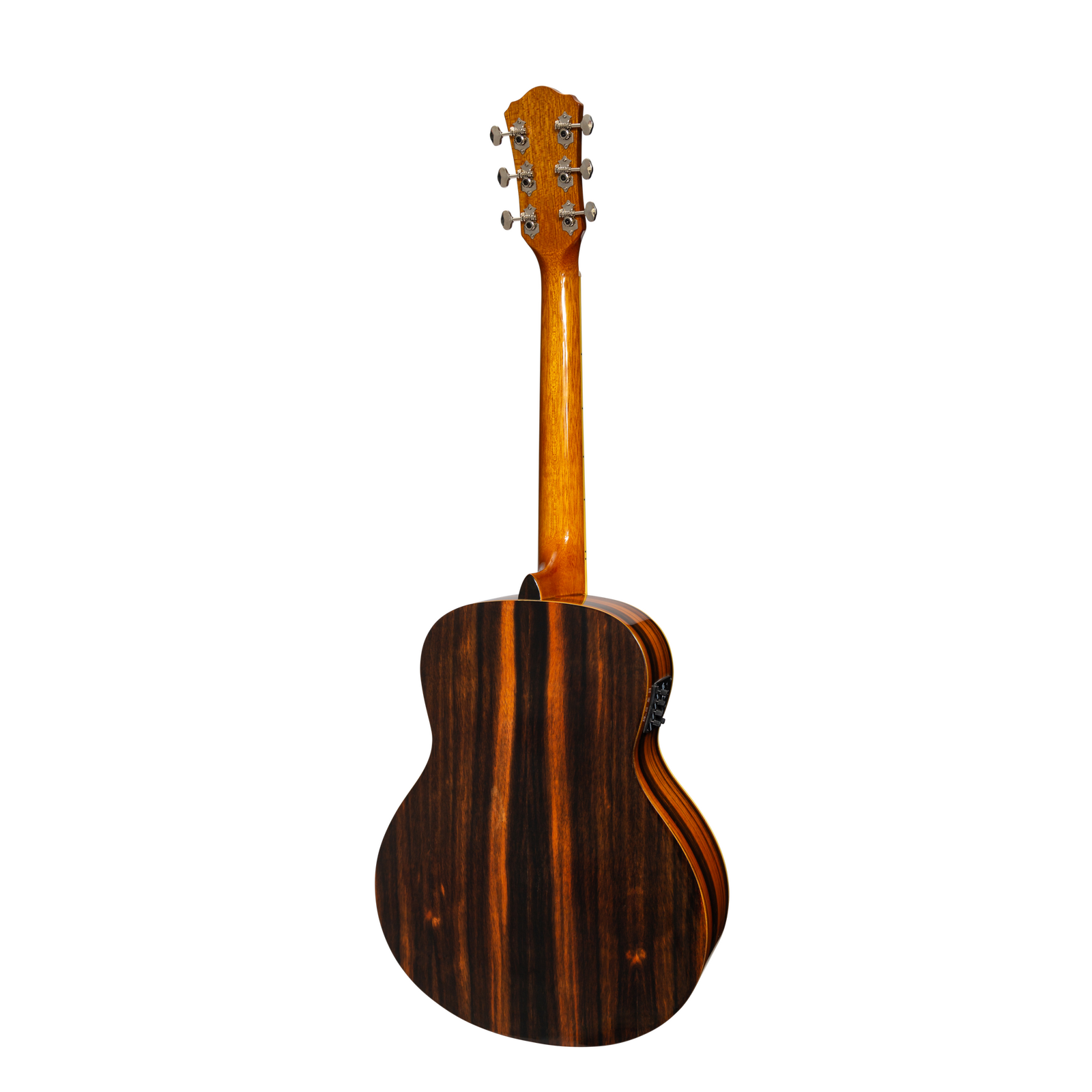 With a 23.5" scale and 'Mini' body shape with arched back, which delivers incredible warmth and resonance for an acoustic of its size.