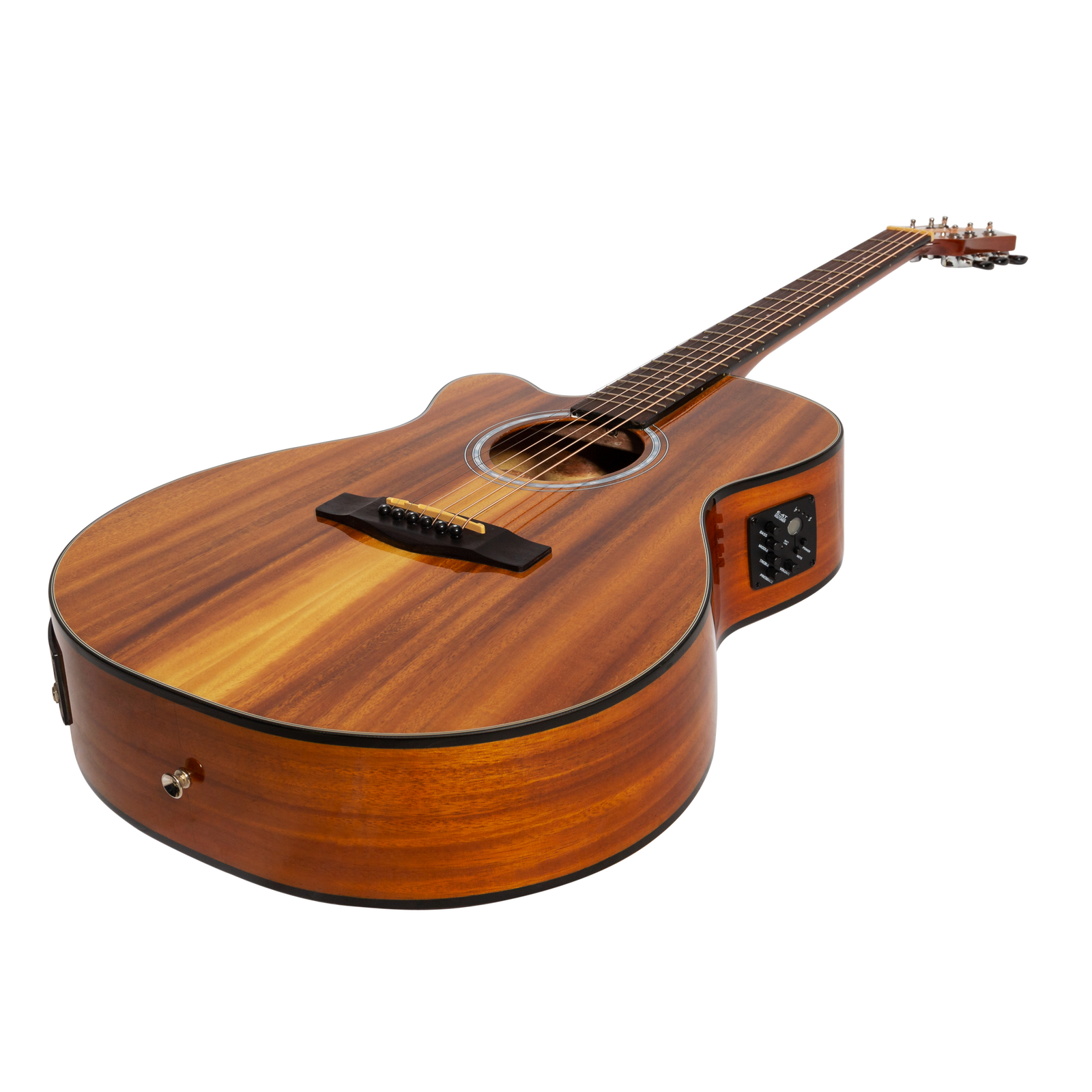 The Martinez '51 Series' Folk Size Cutaway Acoustic-Electric Guitar Koa (Gloss) is an ideal choice for students and intermediate players wanting the tone, feel and appearance of an iconic acoustic guitar in a value-priced package.