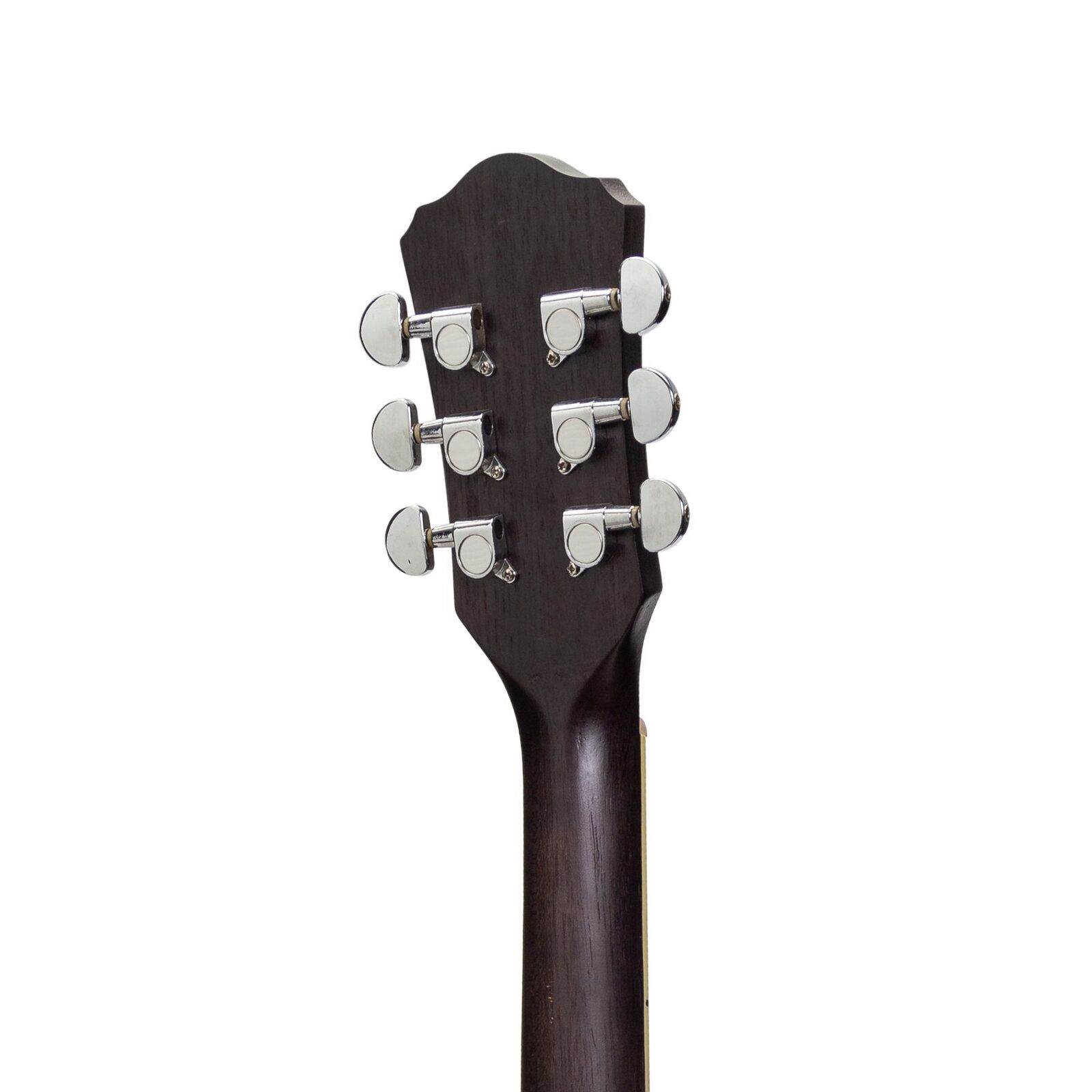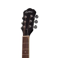 With elegant archtop styling coupled with traditional flat top design, the Martinez MJH-3CP-BLK Jazz Hybrid Guitar is not your everyday acoustic, providing the best of both worlds with its head turning good looks and full bodied acoustic tone.