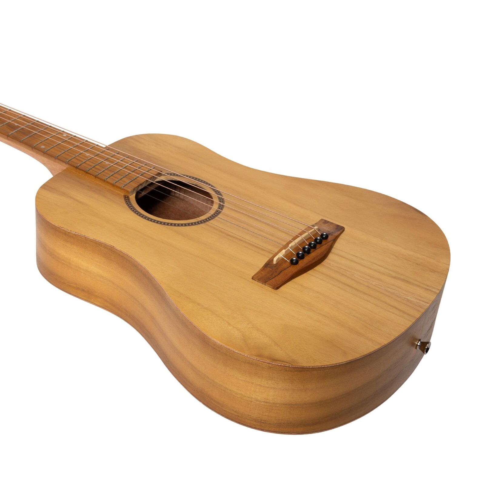 Babe Traveller guitars feature a scaled down dreadnought body shape with arched back for maintaining tonal warmth in such a compact body size, making it the perfect guitar for the travelling musician.