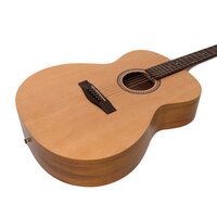 The Martinez MF-25L-NST Small-Body Guitar is a versatile and compact acoustic, which provides players with a bright and balanced tone.