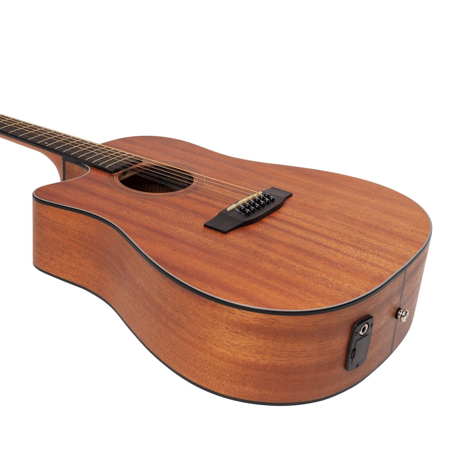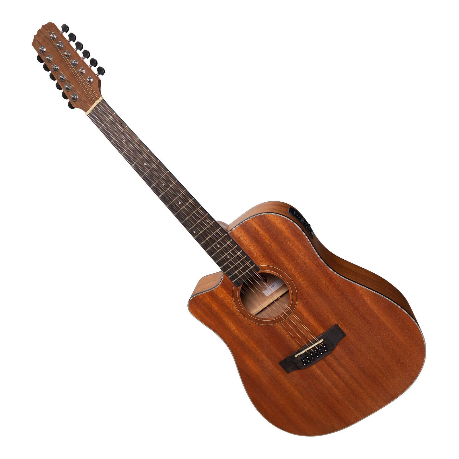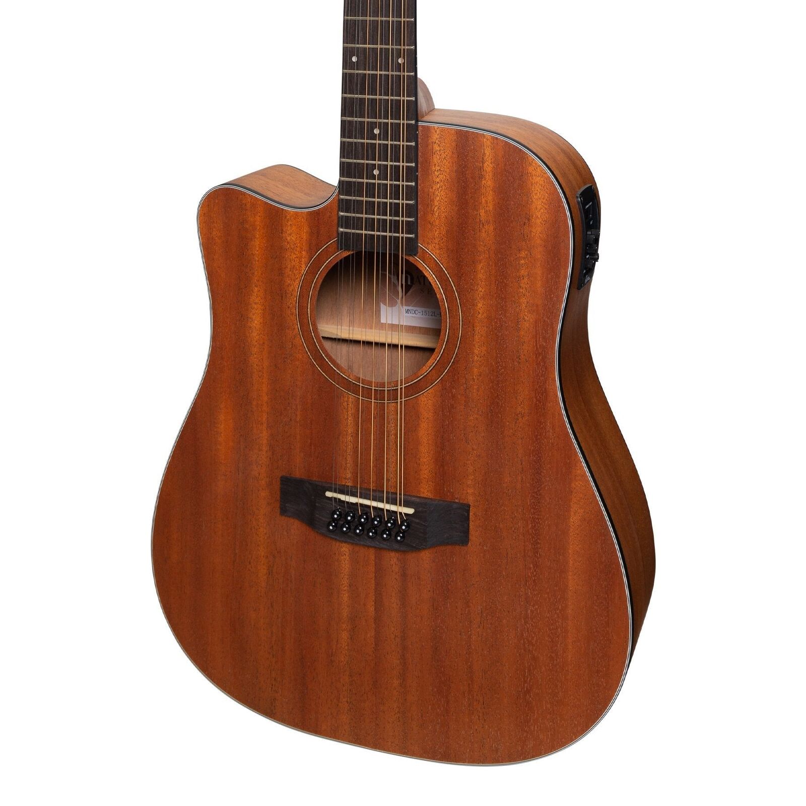 Martinez 'Natural Series' Left Handed Mahogany Top 12-String Acoustic-Electric Dreadnought Cutaway Guitar (Open Pore)