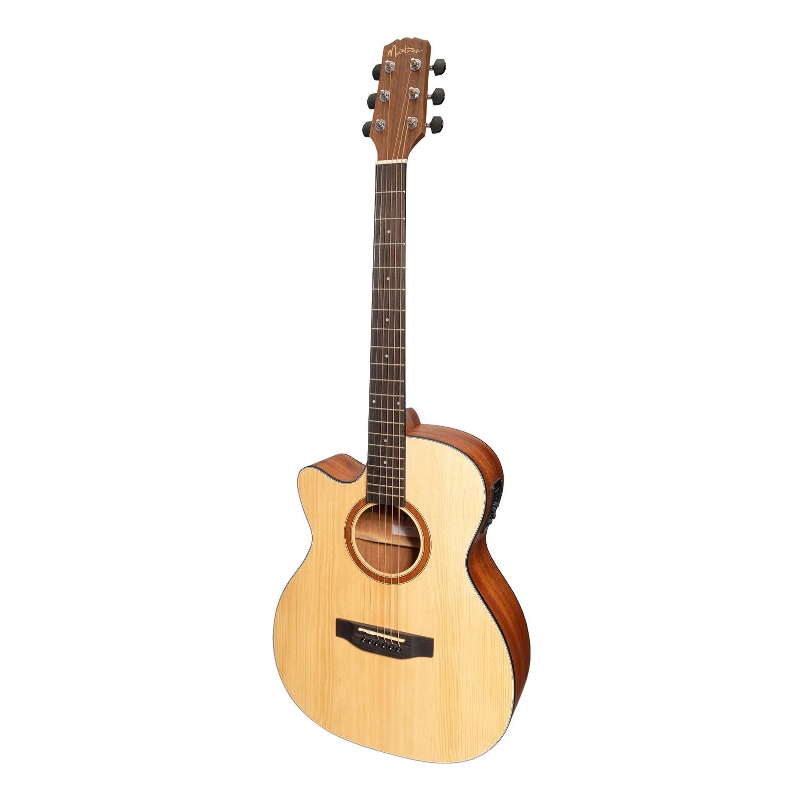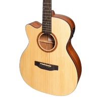 Constructed from traditional tone-woods, using modern techniques and materials, the MNFC-15L Small Body cutaway also features the Martinez K4T preamp with 3-band EQ, volume and presence control and chromatic tuner - an ideal guitar for strumming on stage or at home.
