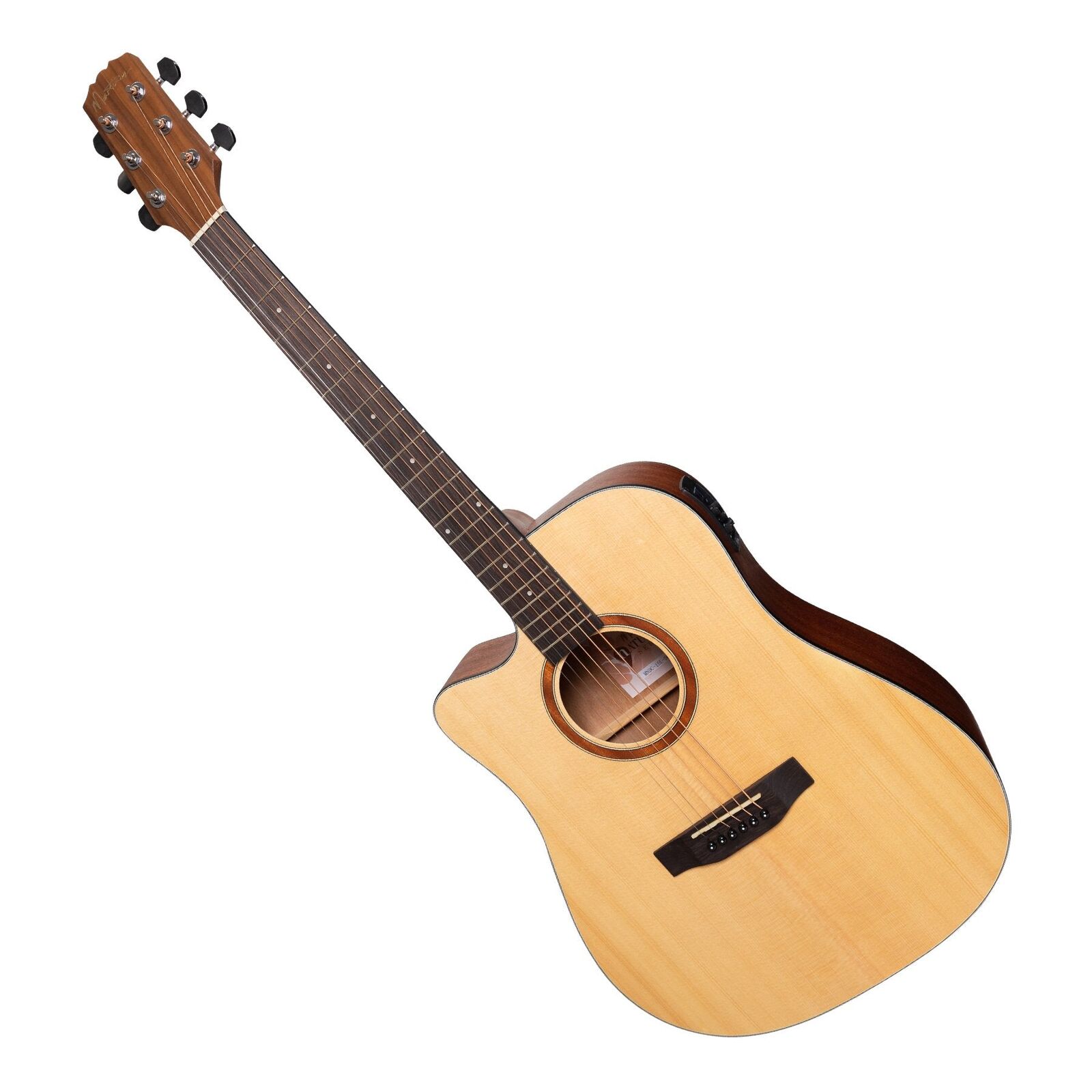 Martinez 'Natural Series' Left Handed Spruce Top Acoustic-Electric Dreadnought Cutaway Guitar (Open Pore)