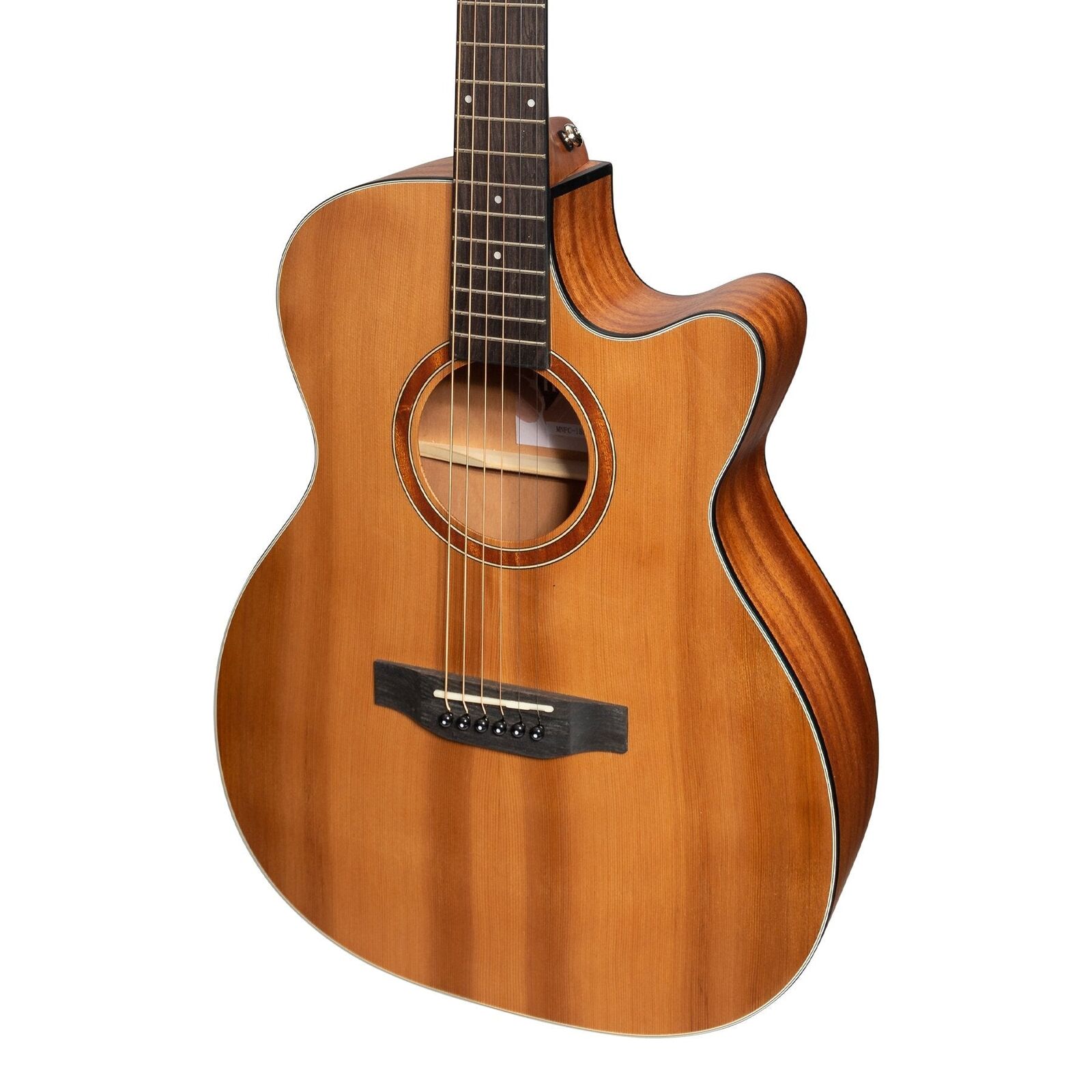 Martinez 'Natural Series' Solid Cedar Top Acoustic-Electric Small Body Cutaway Guitar (Open Pore)
