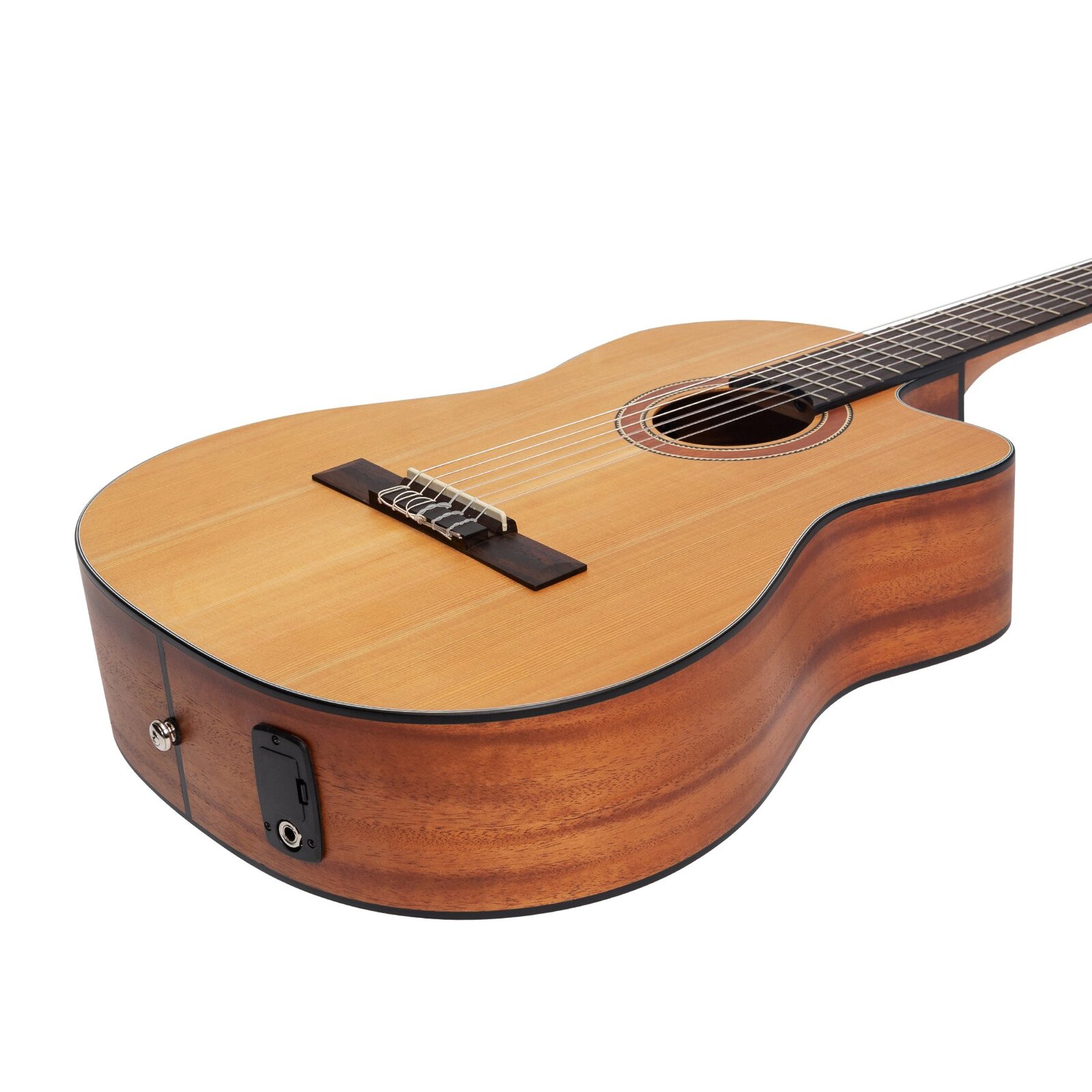Martinez 'Natural Series' Solid Cedar Top Acoustic-Electric Classical Cutaway Guitar (Open Pore)