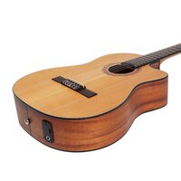 Constructed from traditional tone-woods, using modern techniques and materials, the MNCC-15S produces a powerful voice whilst retaining the classical tone of nylon strings - making it the ideal instrument for those wanting to 'step up' from their student classical guitar. Featuring a contemporary cutaway shape for upper fret access, as well as the Martinez K4T preamp for easy plug-in and play!