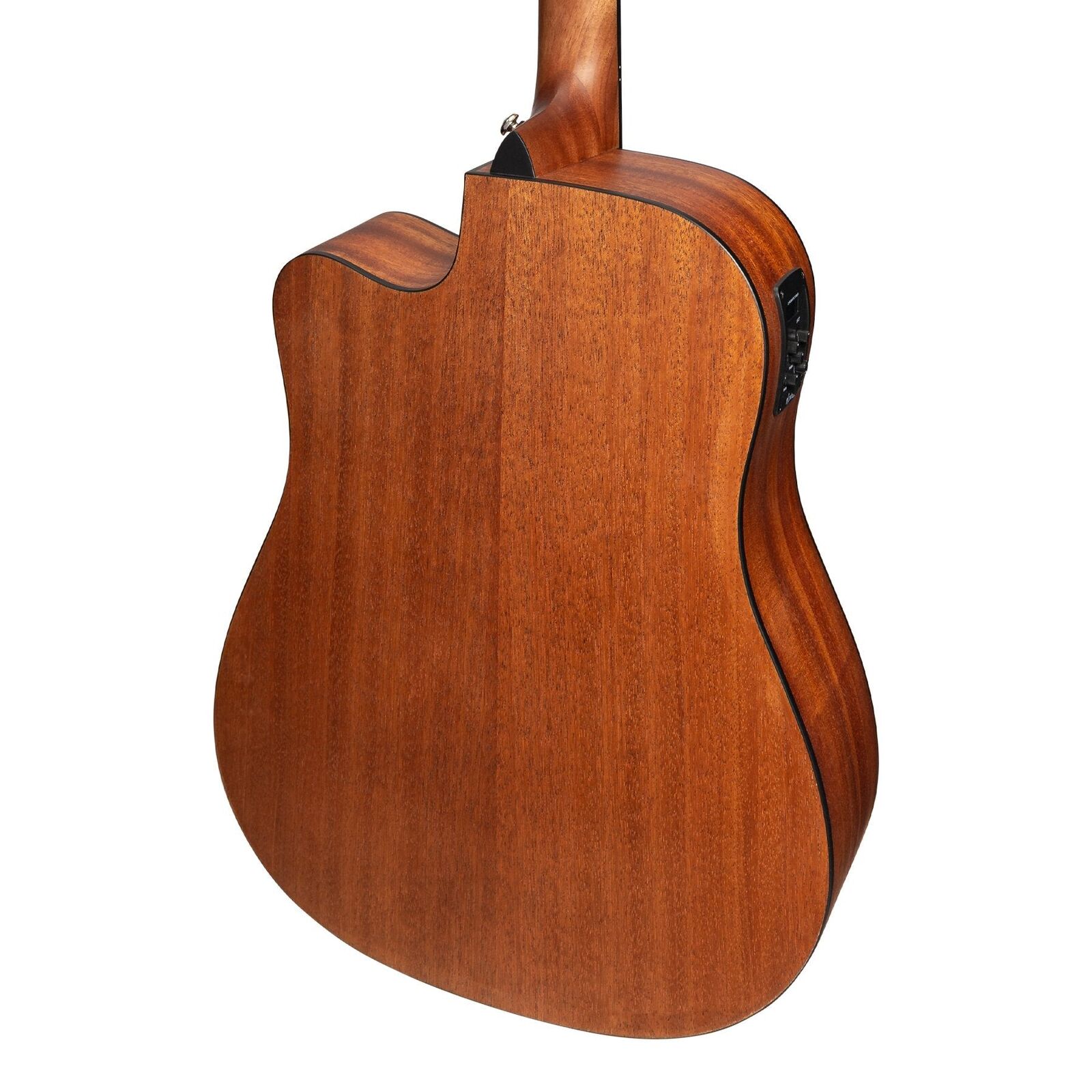 Constructed from traditional tone-woods, using modern techniques and materials, the MNDC-15S dreadnought cutaway features a solid Spruce top, as well as the Martinez K4T preamp with 3-band EQ, volume and presence control and chromatic tuner - an ideal guitar for strumming on stage or at home.