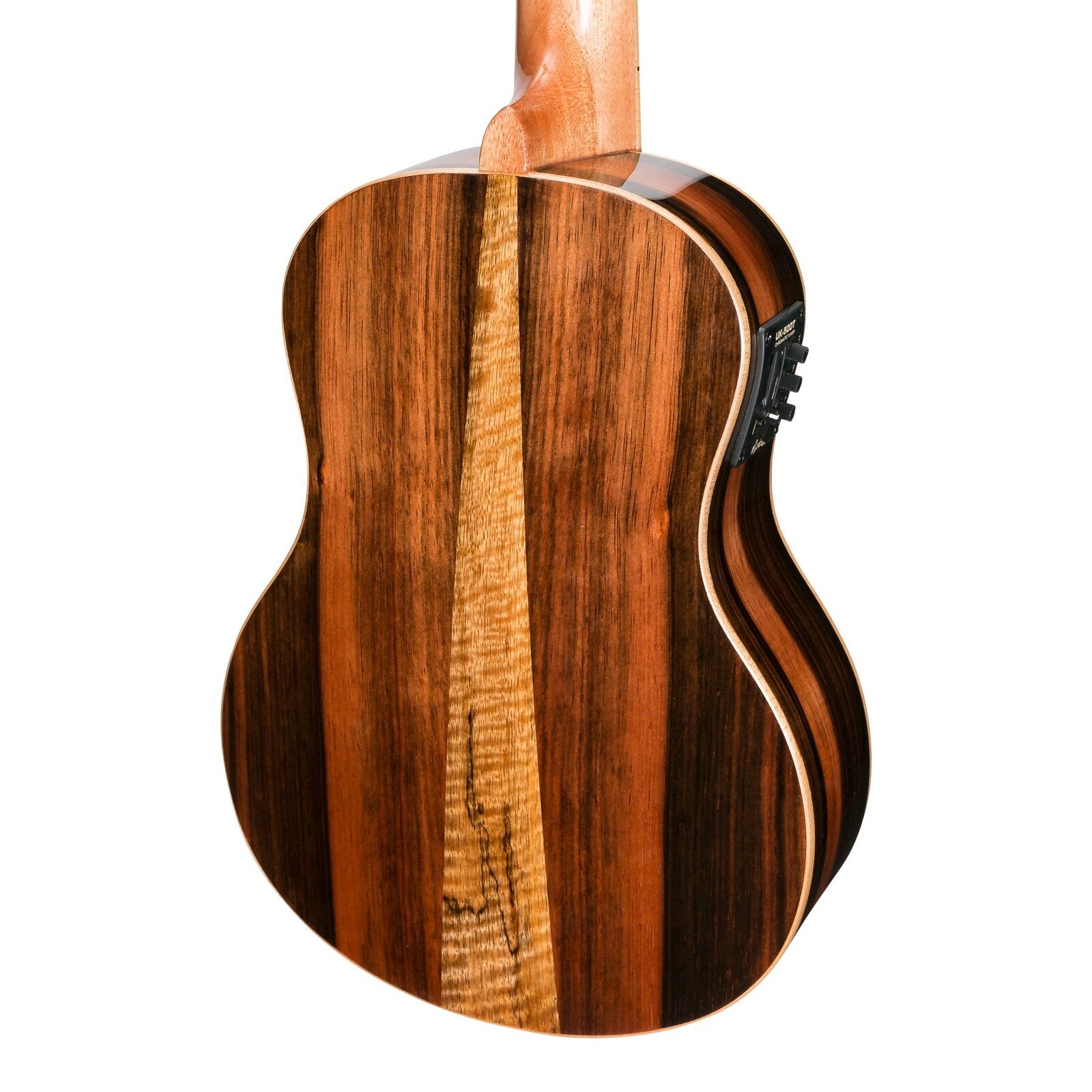 BACK/SIDES: FIGURED EBONY WITH MANGO WOOD CENTRE STRIP