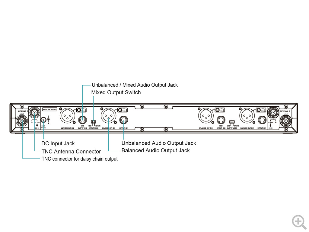 MIPRO Four Channel 2.4GHz Digital Diversity Receiver. 1 RU metal rack mountable receiver. Frequency Hopping Spread Spectrum technology over 83MHz of spectrum, true diversity reception. Detachable antenna with daisy-chain antenna link to next receiver, XLR and 6.35mm jack outputs and mixed output switch. Features Auto Scan and ACT for one-button frequency sync to transmitters. Rackmount via optional FB72. 2.4GHz frequency band.