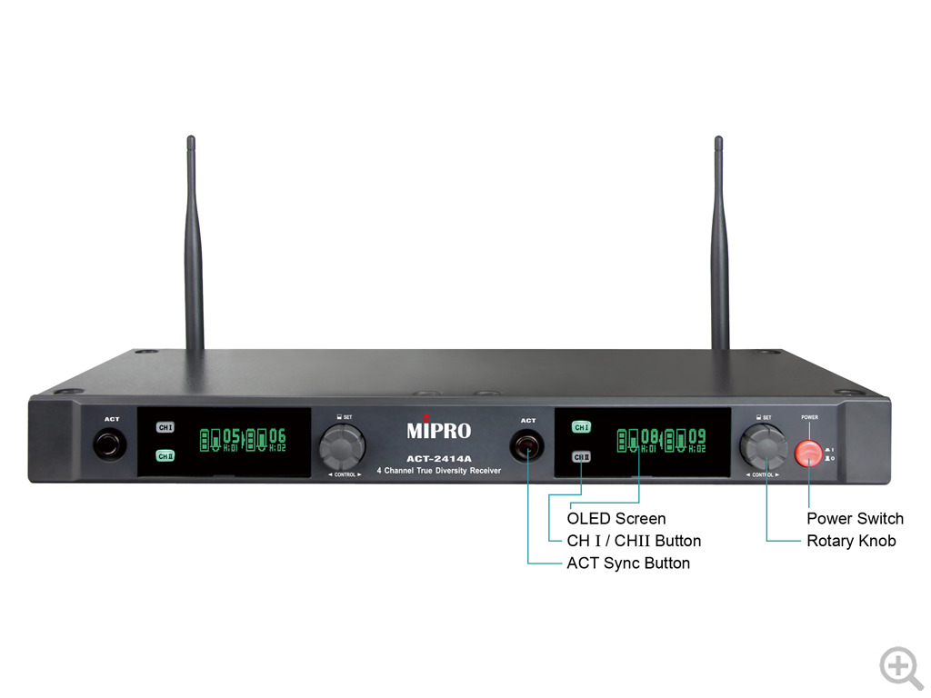 Yes, We Price - Match MIPRO Four Channel 2.4GHz Digital Diversity Receiver. 1 RU metal rack mountable receiver. Frequency (ACT2414A)