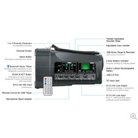 MIPRO Portable PA, 50 Watts with Bluetooth audio player, USB Music Player/Recorder and Dual Wireless Mic Receivers