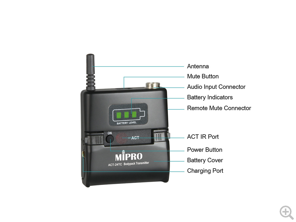 Yes, We Price - Match MIPRO Rechargeable 2.4GHz Digital Bodypack Transmitter. Lightweight and compact size. Battery Status(ACT24TC)