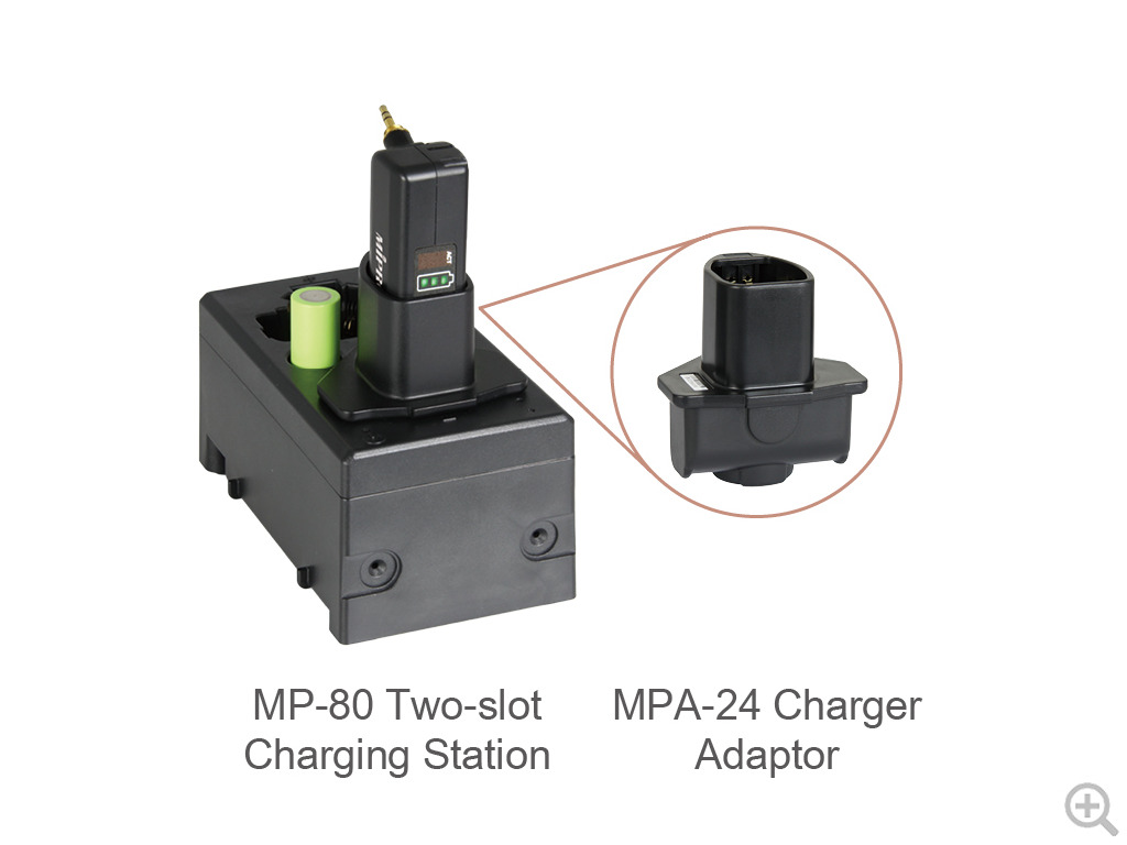 MIPRO Rechargeable 2.4GHz Digital Transmitter with 3.5mm plug for direct connection to smartphones, projectors etc. Supplied threaded 6.35mm adaptor allows connection to guitars, keyboards, mixers etc. Battery Status display. Runs on supplied MB-5 Lithium battery. Use with MP80 charging station (with supplied MPA-24 charger adaptor). 2.4GHz frequency band.