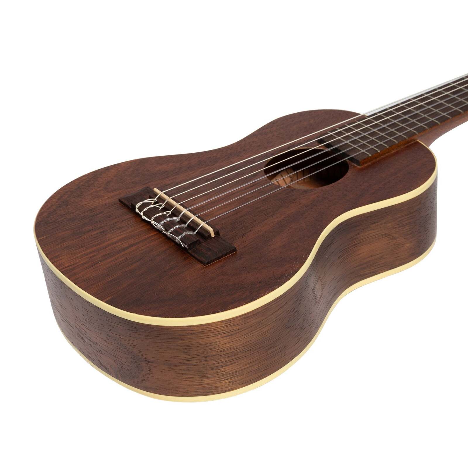 Mojo ukuleles offer a fantastic build and sound quality at an incredible price, perfect for beginner and intermediate ukulele players looking for a high-quality affordable instrument. The Mojo MGT-G2 'Guitarulele' is an exciting combination of ukulele and classical guitar, featuring a 30" or 1/4 size construction, with a traditional slotted headstock with classical, open gear tuners, as well as a rosewood bridge and fingerboard. Perfect for guitar players looking for a ukulele-like tone or a travel-size nylon string guitar to take on the road!