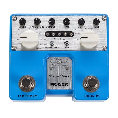 The Mooer MEP-REVCH Reverie Chorus is a compact dual effects pedal housing rich combined tones based on the 5 basal effect modes: Chorus, Rotary, Ambiance, Shimmer and Multiple.