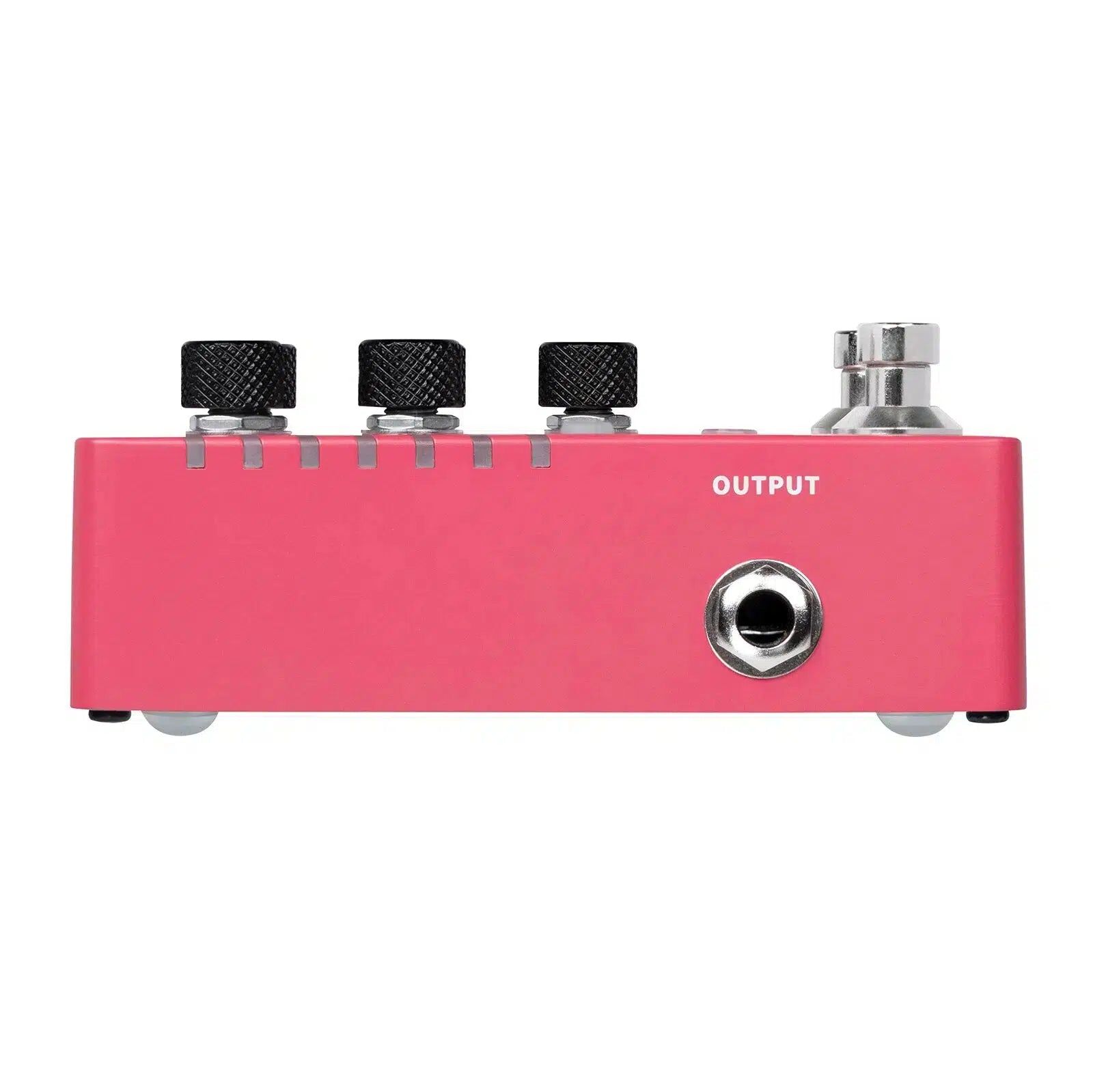 The pedal also contains 14 preset slots, allowing users to experiment and save their favorite parameter combinations with the “Save” button. In classic MOOER fashion, this has been presented in a minimalistic fashion, with 7 LED lights representing the full range of 14 save slots, lighting up blue or red depending on which half of the slots are being browsed. Each slot can be saved into or browsed through the two “Sub” and “Upper” footswitches, providing a further example of MOOER’s dedication to making the most out of a minimalistic interface.