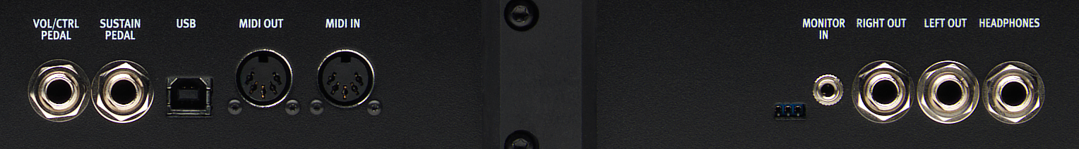 Connect a second Nord keyboard or any other audio source to the rear panel Monitor Input and play along a track without worrying about an external mixer or a sound system. The signal is routed to the main outputs and the headphones output.
