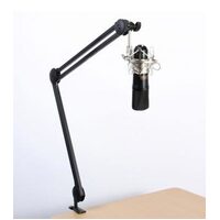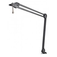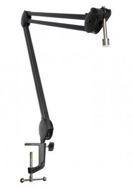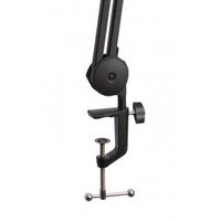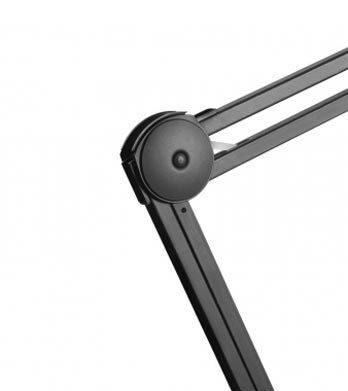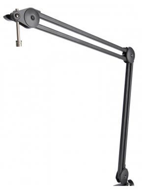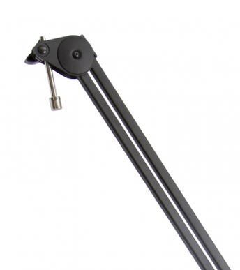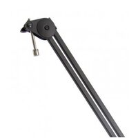 Steel tension cables work together with springs and large joints to provide 150-degree of articulation. Positioning is silent and strong, handling microphones, tablets (with u-Mount series device cases, not included), cameras, or other gear up to 3.5lbs. The 20" upper arm is terminated with a swiveling steel stem compatible with all standard 5/8" - 27 threaded shock mounts and microphones.