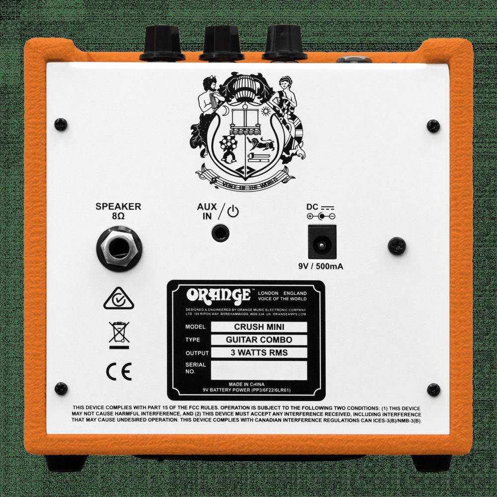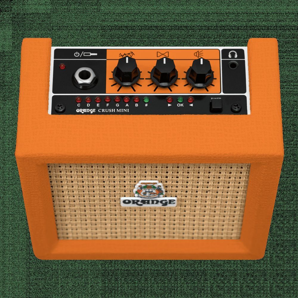 The Orange Crush Mini has been redesigned to give you classic Orange tone in a small, lightweight amplifier. Whether warming up backstage on the road, at practice, or in your bedroom, the Crush Mini is the perfect companion. The redesigned control panel gives you full tonal control with gain, shape and volume. Backing off the gain and pushing the volume up results in British crunch, while pushing the gain up will give you searing high gain. The shape control, like the Micro Dark, cuts or boosts the mids, giving fat mids through to scooped tones. A new feature for the Crush Mini is the 8 Ohm speaker output. Using the preamp stage of the amp, you can plug directly into an external speaker cabinet to open up even more tonal capabilities. The Crush Mini features a built-in tuner, as well as a headphone output that cuts the speaker for silent practice. The AUX IN makes playing along to your favourite songs is a breeze!