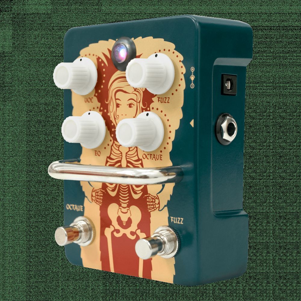 Loosely based on the vintage Foxx Tone Machine, the Orange Fur Coat Fuzz takes its inspiration from the great fuzz pedals of the 70’s. The Fur Coat gives you a fully controllable octave fuzz pedal. Separate switches mean you can choose between Fuzz or Octave Fuzz. The controllable Octave up fuzz means you can bring in the fuzz to whatever level you need and the EQ allows you to boost your Treble or Bass. This truly is a fuzz you control. This is our only True Bypass pedal. This is because a Fuzz is better at the beginning of the chain where it interacts directly with your guitar. Placing the pedal further into your signal chain will give the fuzz a more distorted tone. • CONTROLS (LEFT TO RIGHT): VOLUME, EQ, OCTAVE, FUZZ • CURRENT DRAW: 9V: 3MA, 12V: 5MA • STOMP FUNCTIONS: ACTIVATE OCTAVE, ACTIVATE FUZZ • UNBOXED DIMENSIONS (W X L X H): 9.5 × 6.5 × 13CM (3.7 X 2.6 X 5.1?) • UNBOXED WEIGHT: 524G (1.15 LBS) • Boxed Dimensions (W x L x H): 11.4CM x 14.8CM x 8CM • Boxed Weight: 722g (1.59lb)