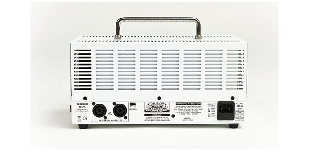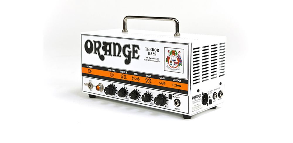 500 ferocious watts and a tube preamp in a compact head. Maintaining the size of the original Tiny Terror, the Terror Bass from Orange Amplifiers is a 500W hybrid bass amp head with a Class D solid-state power section and the AD200B twin-tube 12AX7 preamp. This Orange bass amp’s diminutive size is quite deceiving, especially considering that underneath its sturdy and appealing housing lies an unbelievable 500 watts of class-D solid-state power, paired with a twin tube preamp. The result is a crushing bass power and tone that has put Orange bass amplifiers in a class of their own. The amplifier head features switchable impedance of 4 or 8 ohm, and includes volume, bass, middle, treble, gain, and active/passive switch for further control of your bass tone. Weighing in at just over 11 lb., the Orange Bass Terror is a leader in ultra-compact and portable bass power. Its size makes this bass amp head ideal for traveling musicians. Take it on the bus, subway, in a backpack, or on a bike to that gig, and rock out knowing the sound from this little Orange bass amp head is loud, and proud, and pumps out incredible tone. Includes padded gig bag. Note: The Bass Terror bass amp head does not require rebiasing when replacing tubes. FEATURES • Controls: volume, bass, middle, treble, gain, active/passive switch. • Switchable impedance: 4 or 8ohm • Metal case 1.5 mm Zintec chassis, steel vented top • Output: 500 watts RMS • Dimensions: (WxHxD) 12?W x 6-3/4?H x 5-1/2?D