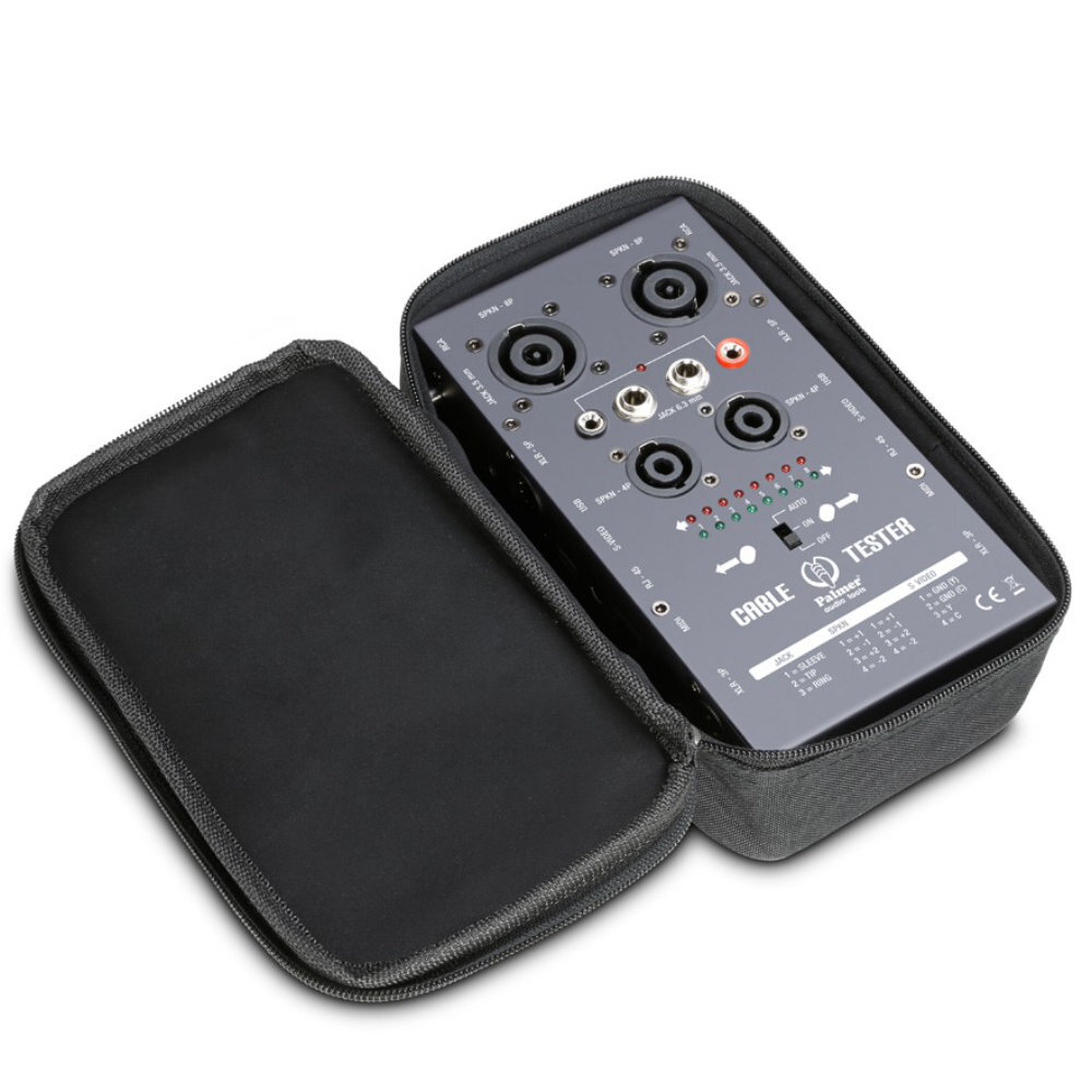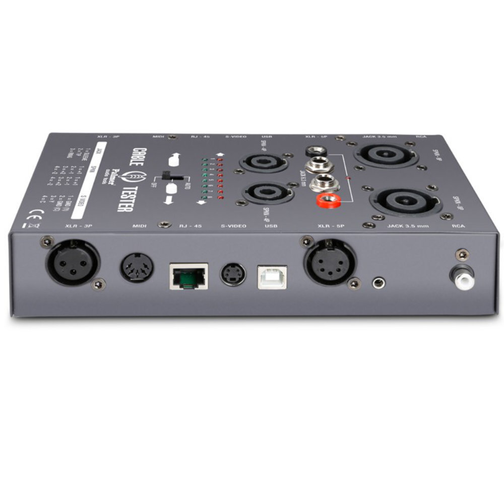 The AHMCTXL V2 can test cables with Speakon 4-pin and 8-pin, XLR 3-pin and 5-pin, 3.5 mm and 6.35 mm TS and TRS, RCA, DIN/MIDI, USB, RJ-45 and S-Video connectors. It includes a pair of probes that enable troubleshooting cables with other types of connectors or the wiring in studios and installations.