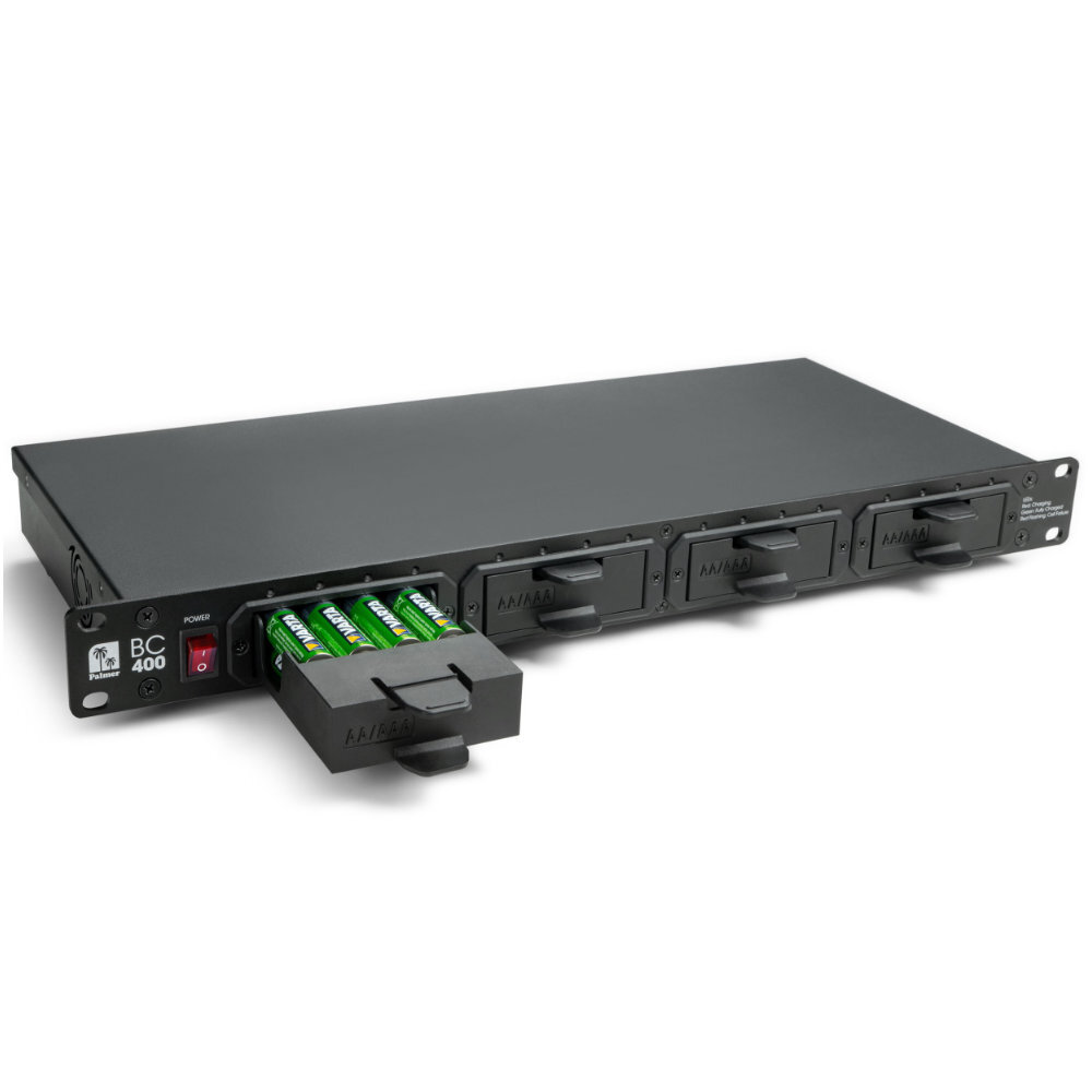 The Palmer 19"" quick charger monitors the charging status of each individual battery, identifies defective batteries, and protects against overcharging and short-circuiting. The built-in multi-voltage power supply facilitates worldwide use. The Palmer BC 400 AA does not include rechargeable batteries.