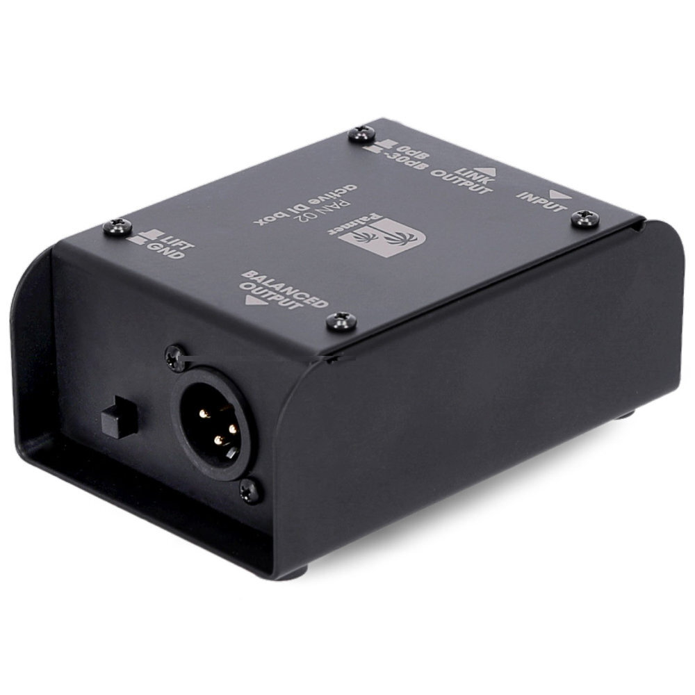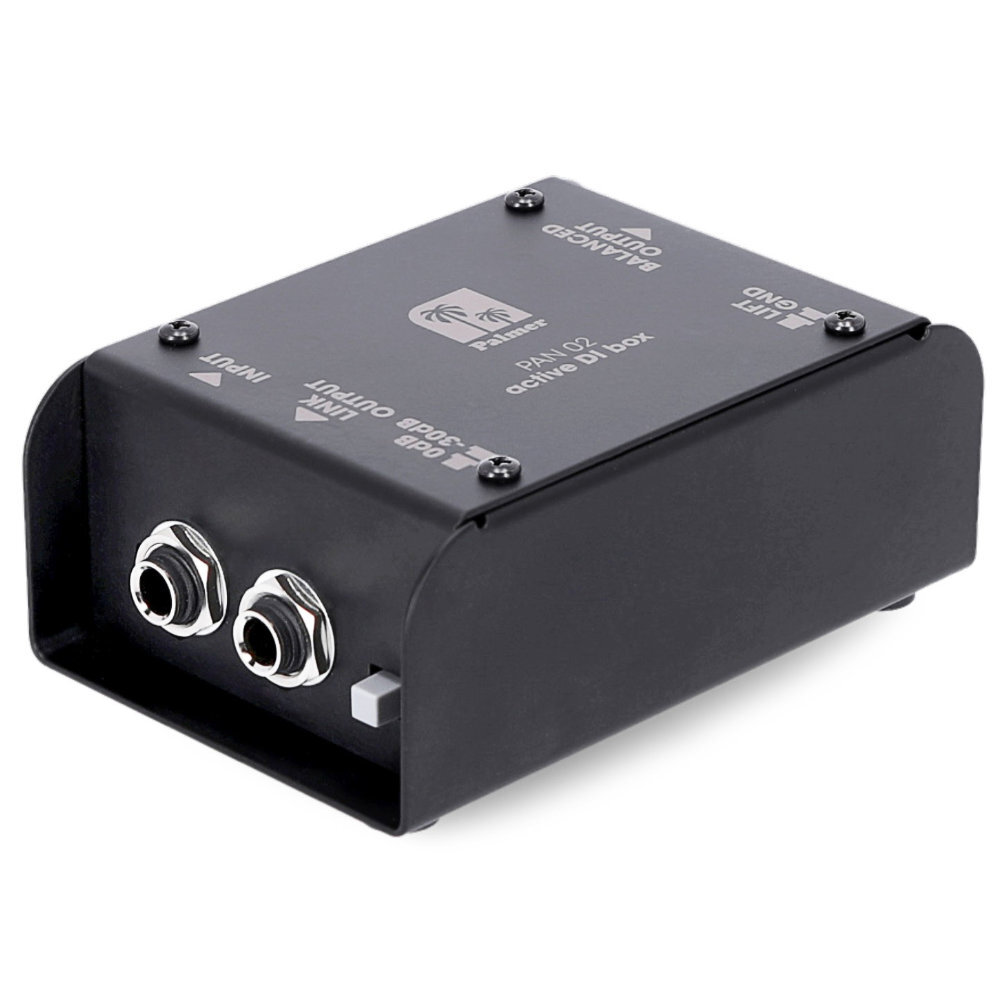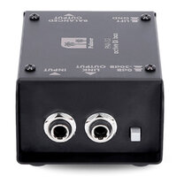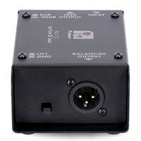 "Standard active DI box. Can be operated with 9 V batteries or 48 V phantom power. High-impedance input; higher output level than with a passive DI box. Active circuitry allows for high input impedance ( 1 meg. ohm) and higher input sensitivity (typical difference between in and out -4 dB). Maximum output impedance with phantom power operation +10 dB. Output: transformer balanced. The special ""floating ground"" circuitry enables ground lift even during phantom power operation. Metal case 110 x 73 x 42 mm.